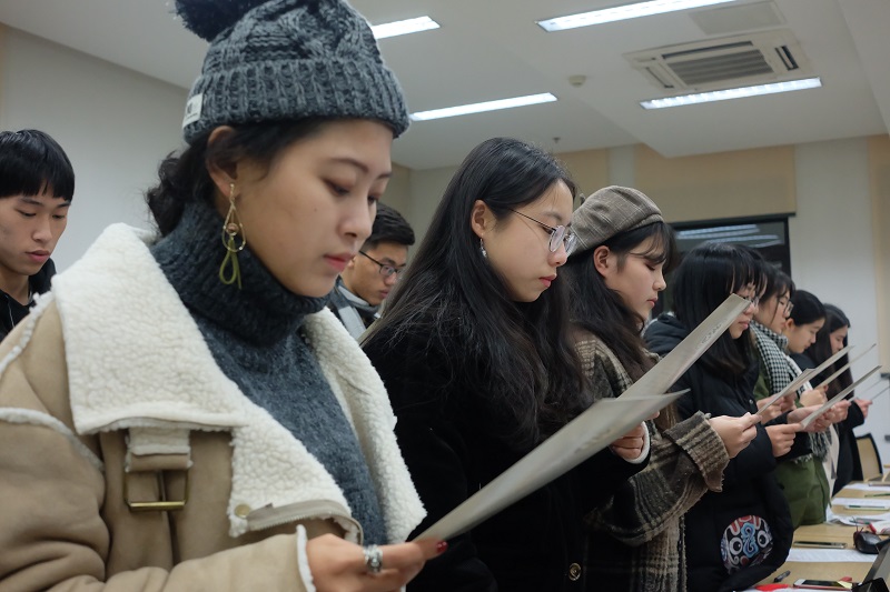 图为17级经院学子诵读诚信考试承诺书