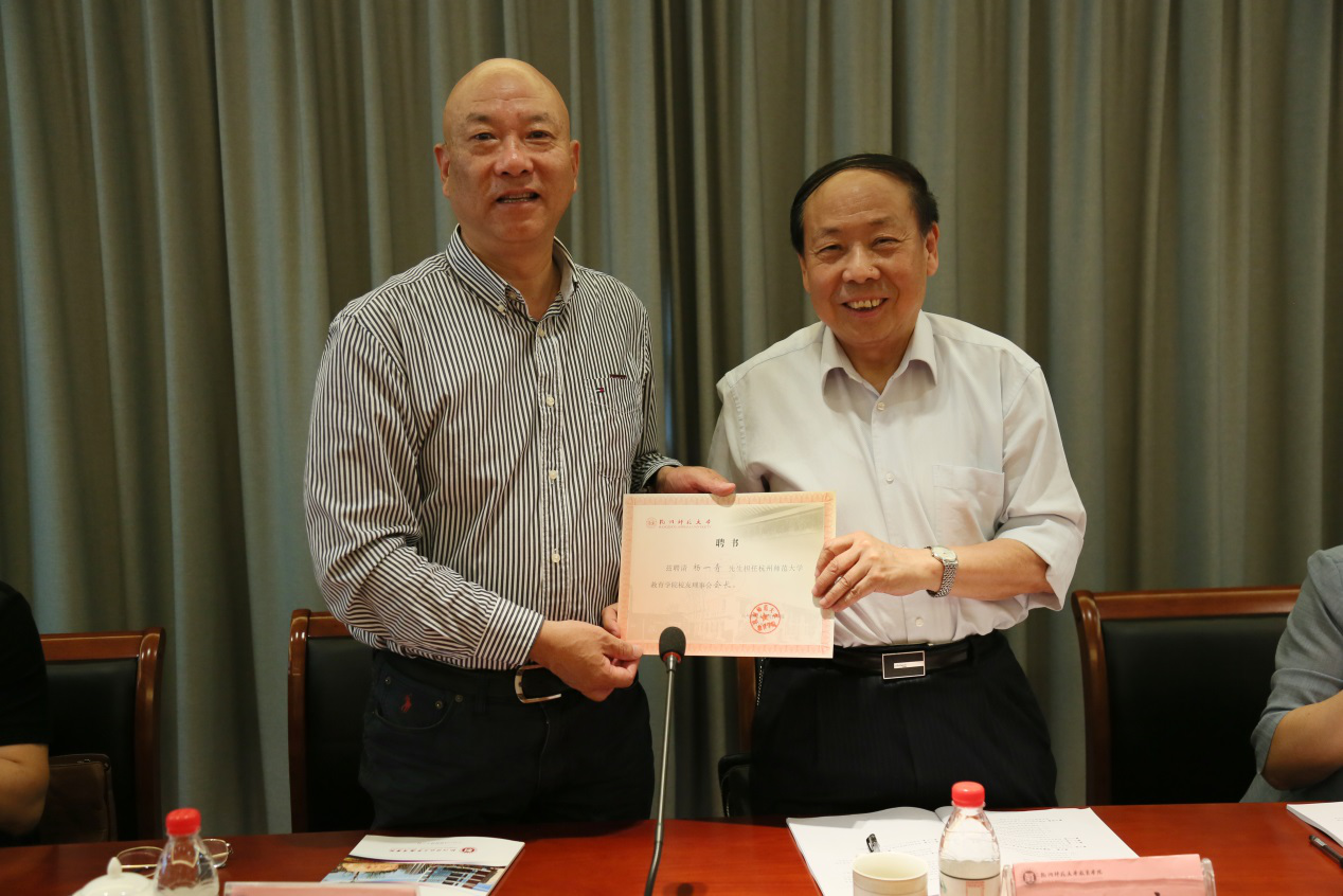 (杨一靑老师作为校友理事会成员代表接受了女性自慰 授予的聘书)