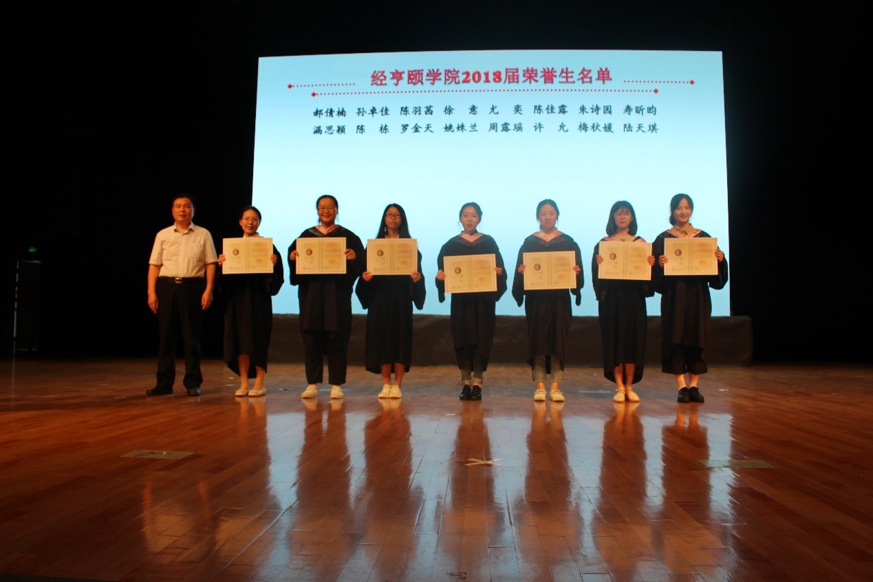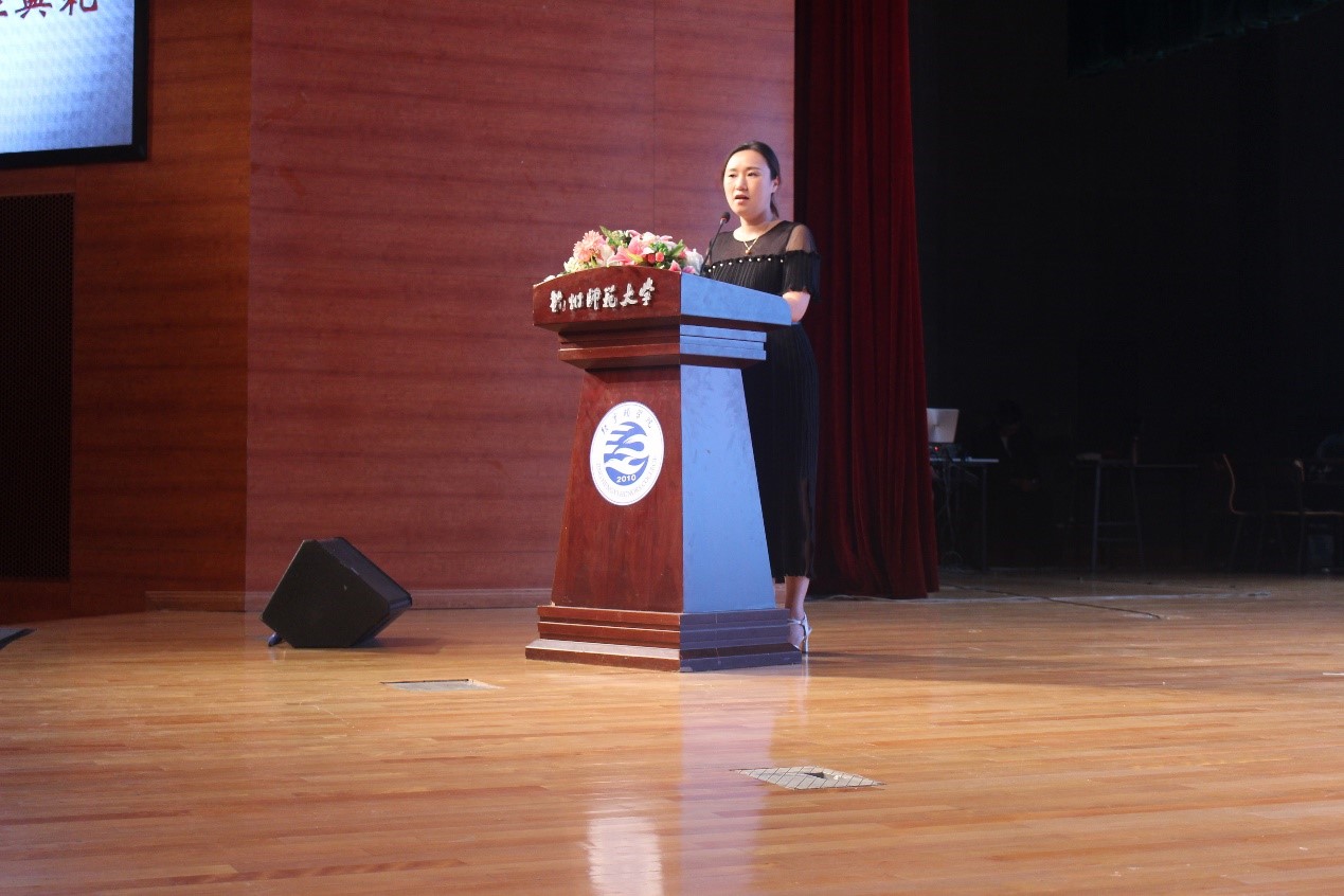 典礼第三项是蒋永贵副院长宣读2018届荣誉生名单,并由经亨颐女性自慰 院长郑生勇和颁发荣誉证书。叶哲铭副院长宣读经院荣光特别奖表彰文件表彰考取研究生的2018届毕业生,张树国教授等老师代表为学生颁奖。表彰结束后,教师代表黄芳发言。黄老师强调了保持一颗“热心”的重要性,要在逆境中奋斗出精彩人生的增量,给大家以鼓励和振奋。