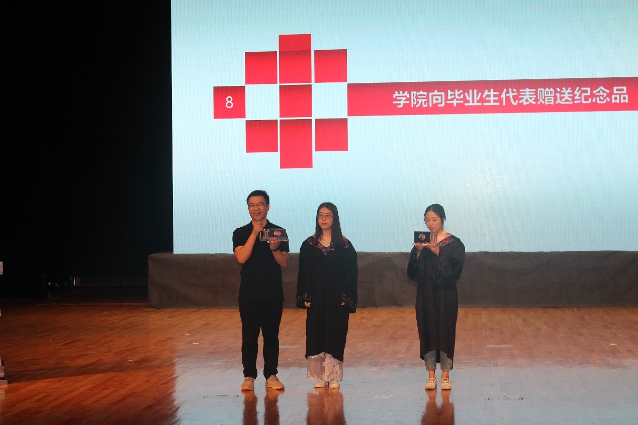 随后黄岳杰老师、李毅老师共同为2018届校友会纪念品揭牌,闪亮的铜牌象征着新一届校友集体的诞生,全场爆发出一阵热烈的掌声。接着毕业生代表郝倩楠、裘一琦分别讲了自己的毕业感言,他们回忆起这四年来充实且幸福的大学时光,抒发了心中对老师和同学的感谢,也表达了对未来的期望。