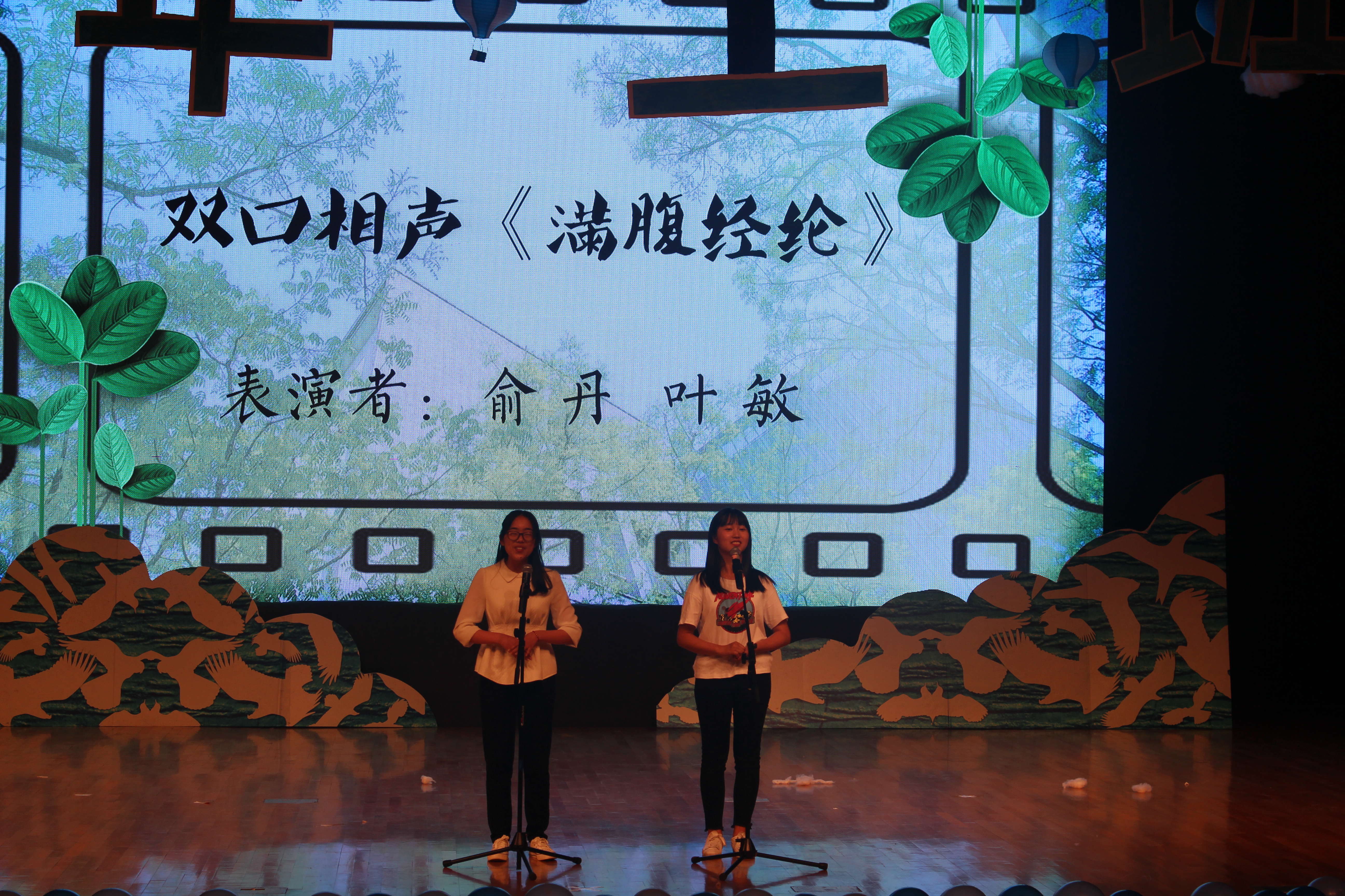 经亨颐舞队给观众们带来了开场舞蹈《Pick me》,让晚会的气氛迅速变得热烈。而后沈晨苑和王雨婷用低婉的歌声和温柔的吉他演绎了歌曲《最好的我》,以致敬在过去的岁月中遇到的那些真挚的朋友和强大的敌人。接下来的双口相声《满腹经纶》、乐器合奏《幽默曲》、小品《最后一课》都各有风格,诙谐的语言、悠扬的音乐、优秀的表演都深深打动了台下的观众。尤为值得一提的是诗朗诵《青春》。毕业生与在读生共同参与这个节目,结合了歌曲和诗句,为在场的观众展现出了往日在校园中的生活。不论是课堂上的细节、同学间的相处、不同老师的脾气、学校里每个角落的点点滴滴,都令人难以割舍。六位表演者充满感情的朗诵,让台下观众不由潸然泪下。