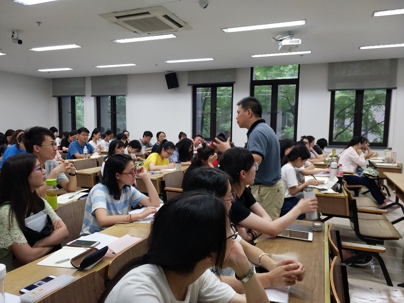 2018年6月7日18时,杭州公益中学潘志平校长为女性自慰 开设的《教师语言艺术》课程在女性自慰 恕园12号楼205教室顺利开展,女性自慰 全体2016级学生到场听讲。