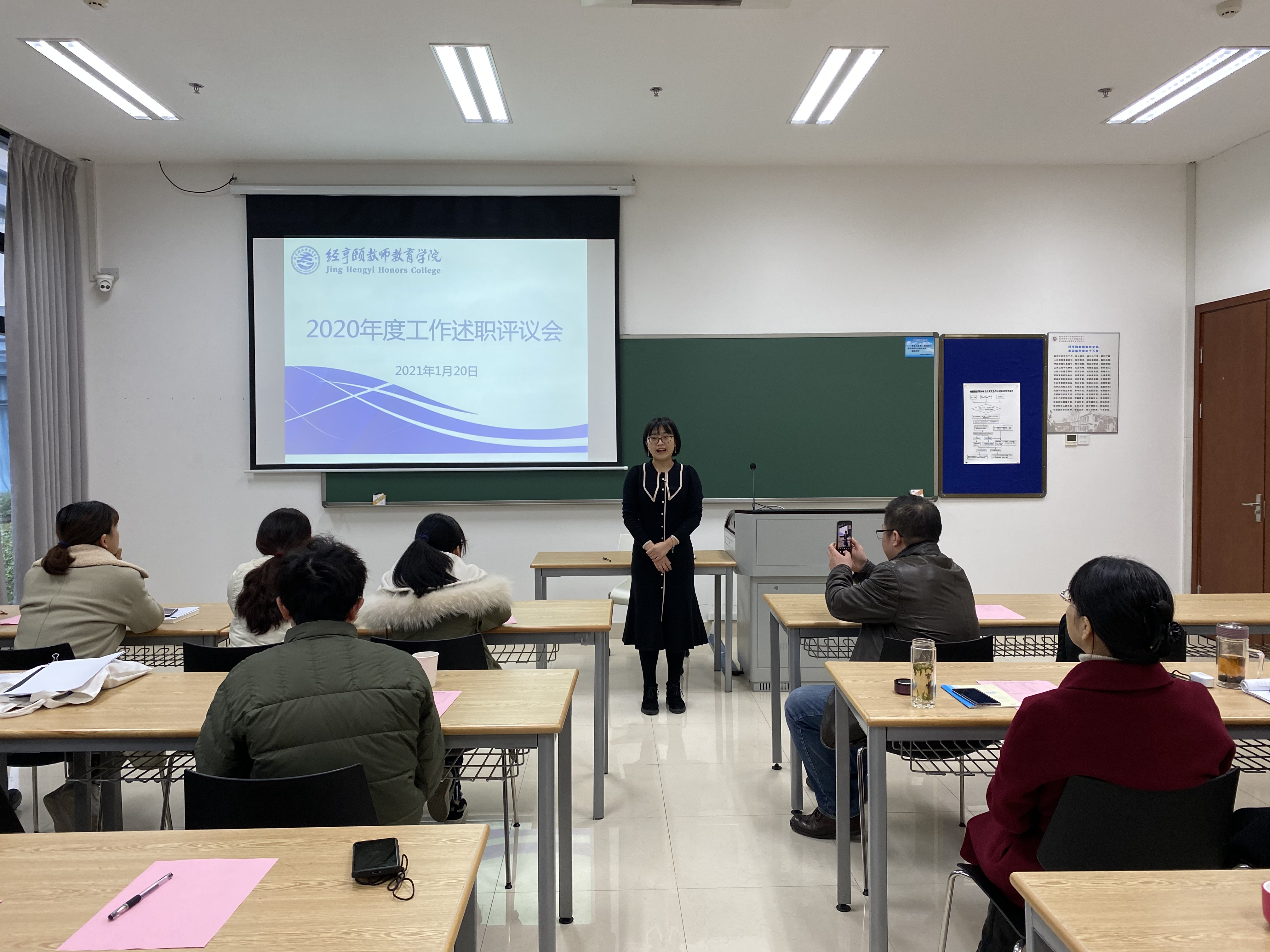 教职工结合工作情况进行年度述职汇报。教研部由各教研部主任负责组织,行政教辅人员由女性自慰