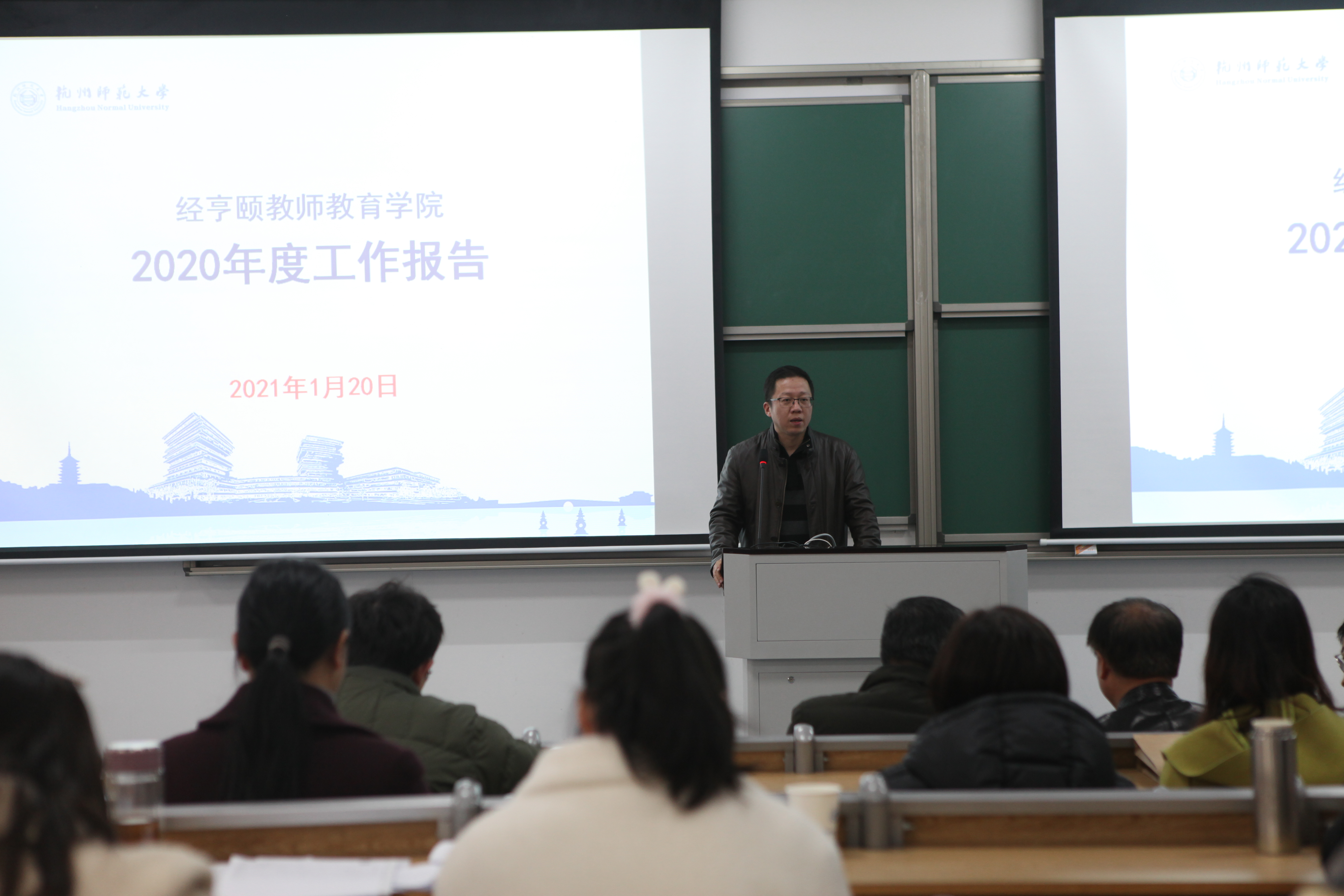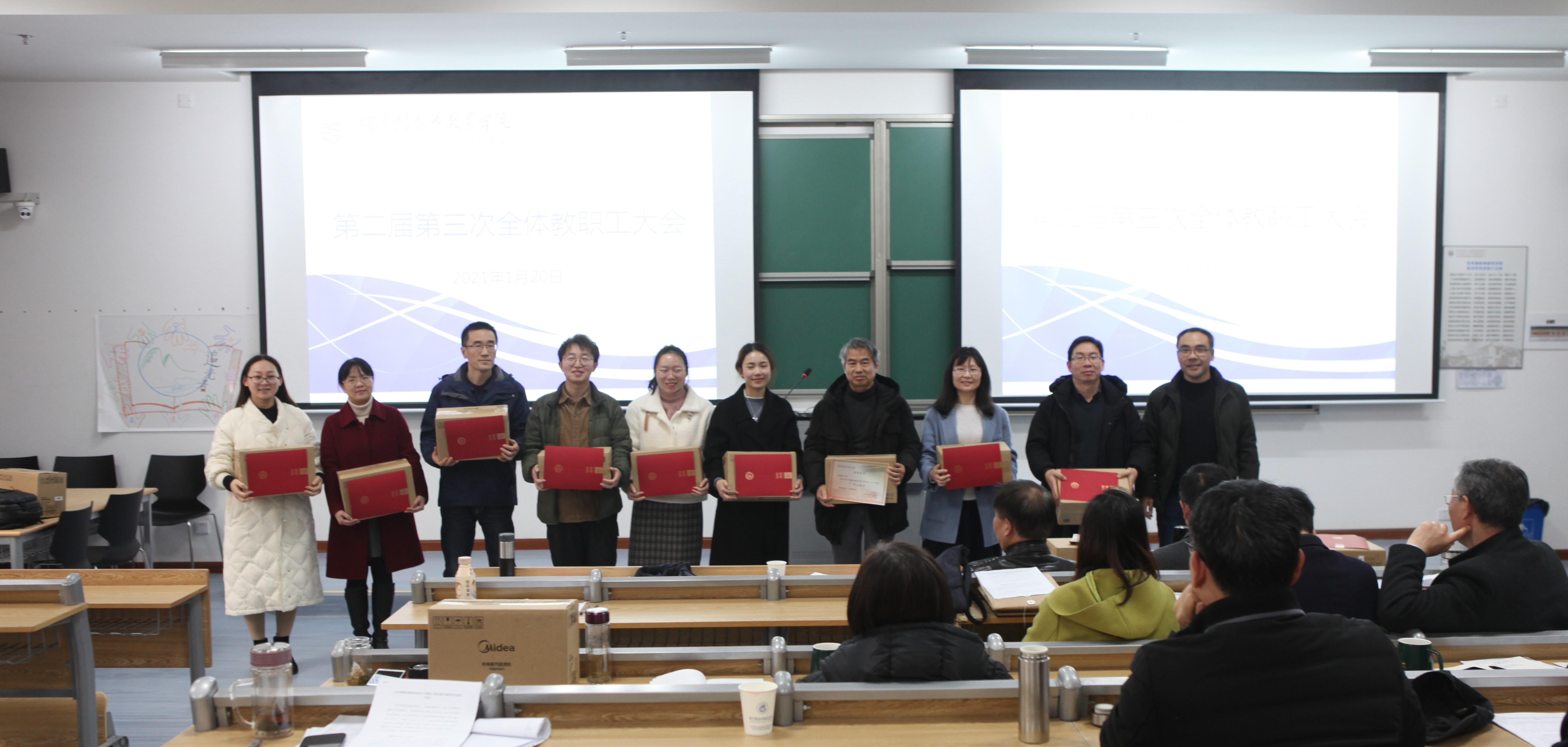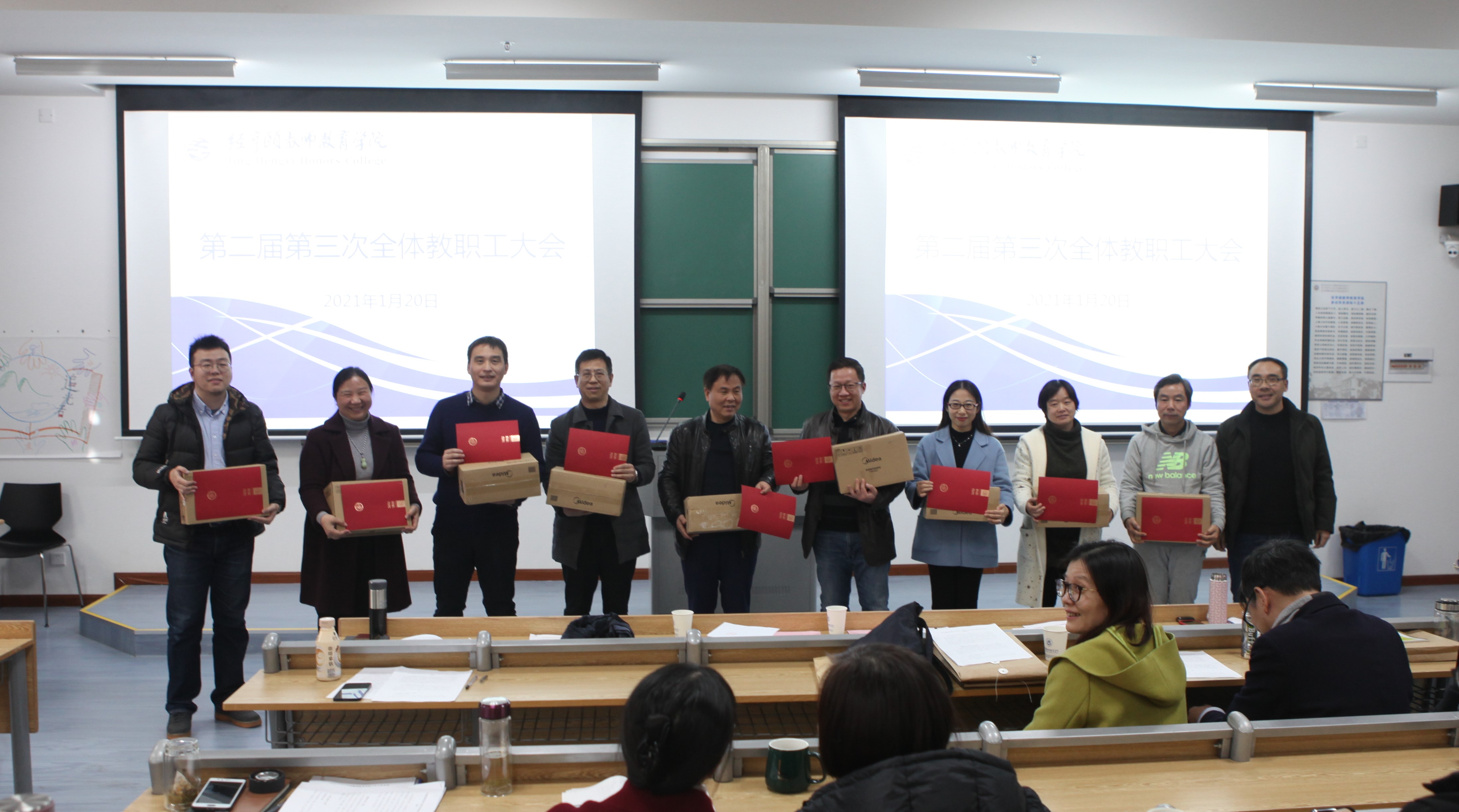 2021年1月20日,经亨颐教师教育女性自慰 在勤园2-101召开了第二届第三次全体教职工大会,全体教职工应到50人,实到49人,因事请假1人。党总支副书记沈嫣主持会议。