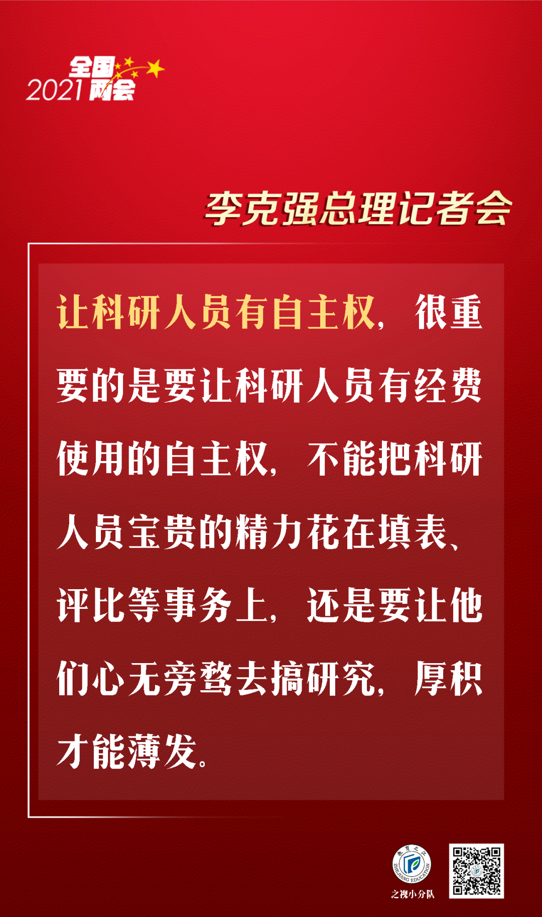 目前我国全社会研发投入占GDP的比重还不高,尤其是基础研究投入只占到研发投入的6%,而发达国家通常是15%到25%。我们下一步要加大基础研究的投入,还要继续改革科技体制。让科研人员有自主权,很重要的是要让科研人员有经费使用的自主权,不能把科研人员宝贵的精力花在填表、评比等事务上,还是要让他们心无旁骛去搞研究,厚积才能薄发。讲到这里,我想对青年学生们说几句话,不管你们将来从事什么职业、有什么样的志向,一定要注意加强基础知识学习,打牢基本功和培育创新能力是并行不悖的,树高千尺,营养还在根部。把基础打牢了,将来就可以触类旁通,行行都可以写出精彩。
