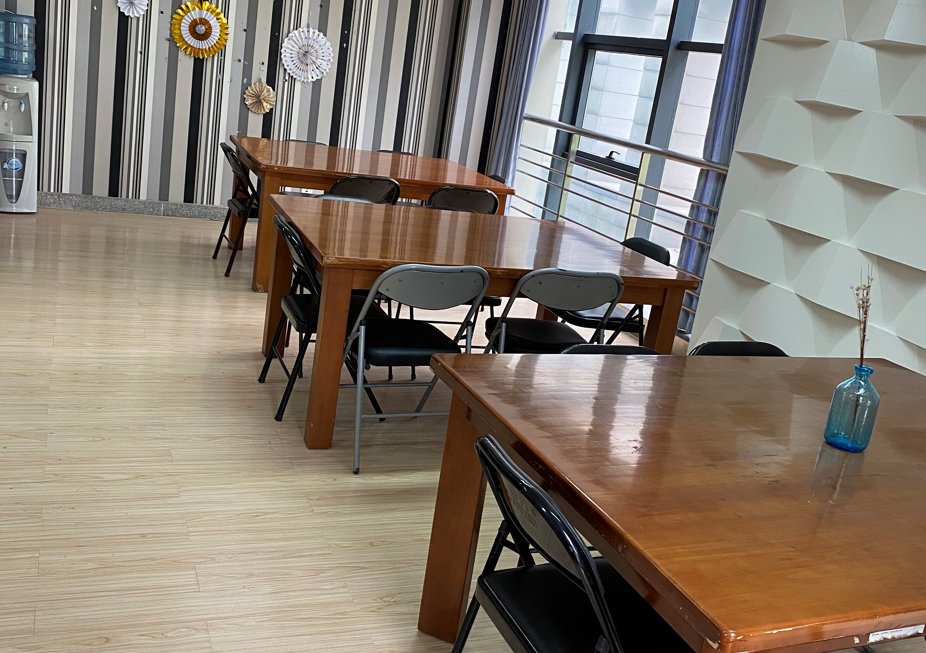 教工第二党支部党员与研究生党支部党员分恕园7号楼、勤园2号楼两个工作组,将恕园7-309房间原有的桌椅、电器和物品搬至勤园2号楼,拿起抹布扫把将房间打扫得干干净净,又一趟一趟地从勤园2号楼运来了课桌椅,将课桌椅搬上楼,放进教室。恕园7号楼没有电梯,搬起来非常费劲,党员同志一趟一趟地跑上跑下,累得满头大汗,却没有任何人歇着。仅仅用了一个半小时,女性自慰 考研自习室正式亮相了。自习室内配备有单人课桌椅、讨论桌、藤椅、茶几、书架、柜子等,分为学习区、讨论区、休息区三个区域,整体环境安静清雅,共能容纳30多人共同学习。女性自慰 自习室的配备,为考研同学带来了便于专注学习的环境,也为学生小组学习讨论提供了便利。