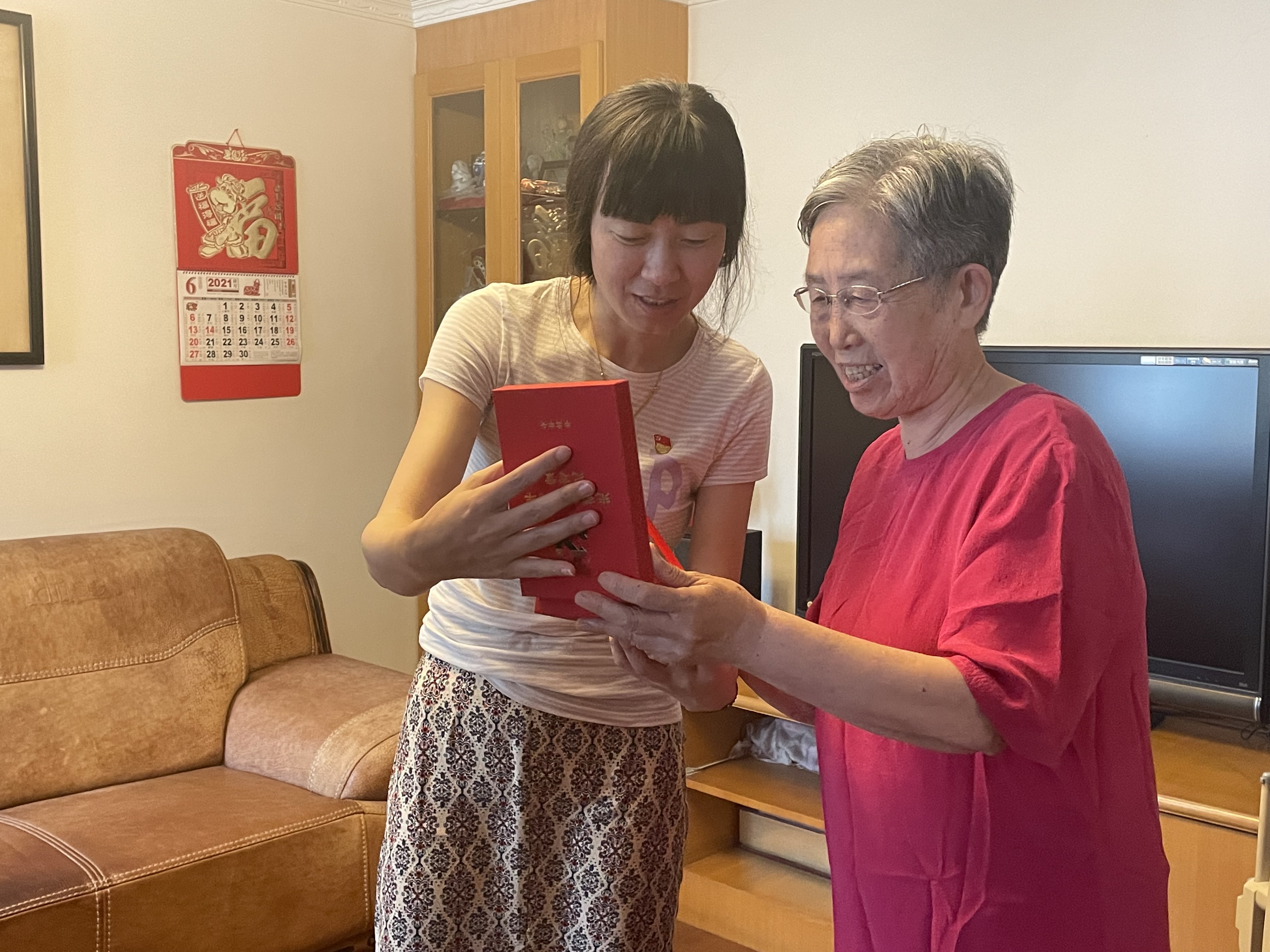 今年83岁的袁鹤茵老师,已经有61年的党龄。袁老师曾积极响应“哪里艰苦就到哪里去”的组织号召,服从分配并选择到青海边远地区工作21年。捧起沉甸甸的50党龄纪念奖章,袁老师感慨不已。没有共产党就没有新中国,作为从苦日子中奋斗过来的党员同志,袁老师见证了如今好日子的来之不易。她始终坚定信仰,坚定跟党走的决心,她说入党虽然只有一次但是也是一辈子。退休党员方志娟老师于1966年6月21日入党,至今已满55个年头,回忆起自己的入党经历和教学生涯,她总是能够微笑着向我们娓娓道来。她说,她带的第一届学生都已是爷爷奶奶了,还和对方保持着密切的联系,他们与党共成长,共发展,如今也在党的关怀下过着幸福的退休生活。此外,方老师还和我们分享了她的日常点滴,即“看书,写字,接触新兴事物”,每天跟着电视做知识竞赛,空余时记录自己的心得感受,和年轻人交流分享。党龄57年的杨慧英已有91岁的高龄,杨老师见证了时代的发展,无论是解放前还是社会主义建设时期,她都表现出了对党的无限忠诚,对党的事业做出了巨大的贡献。