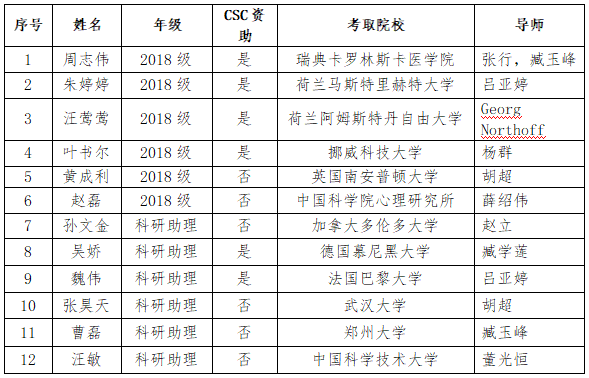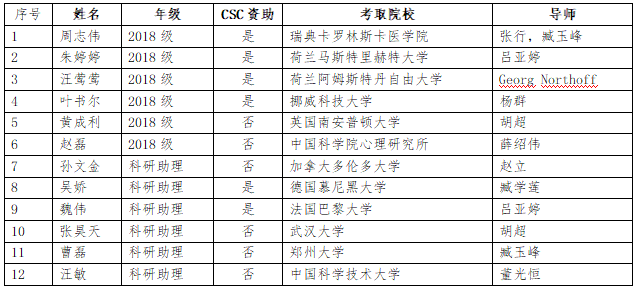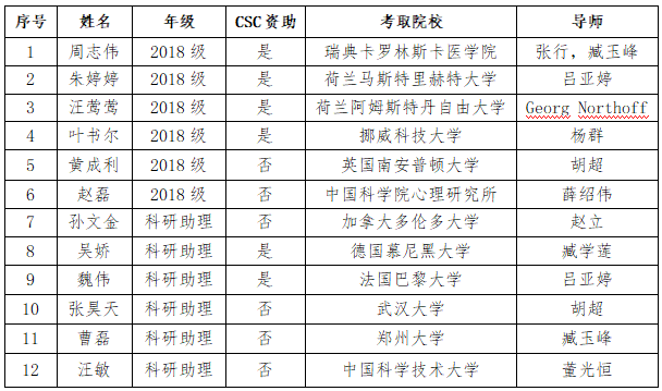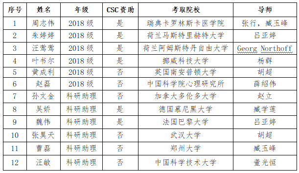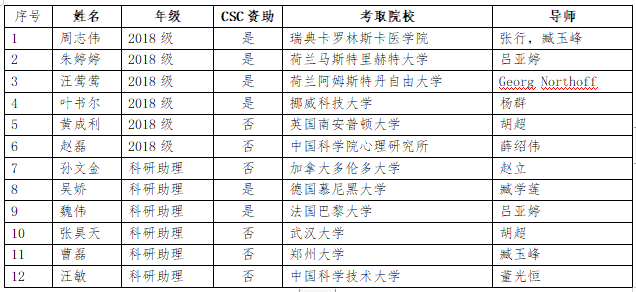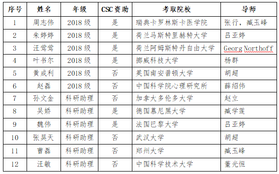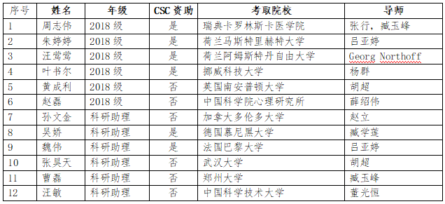 截至2021年6月,心理学科2021届25名硕士毕业生中,已有6人收到博士录取通知书,其中4人得到国家留学基金委(CSC)资助到国外知名大学深造。此外,本学科还有6名位科研助理(多为本校之前毕业的研究生)成功考取博士,其中2人得到CSC资助。