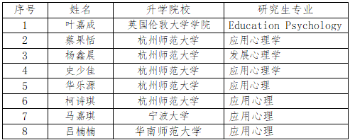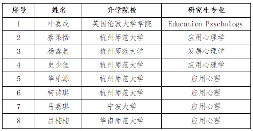 2017级应用心理学本科生在升学中取得佳绩,今年37名毕业生中,7人考取国内研究生,1人到海外留学,升学率再创新高。