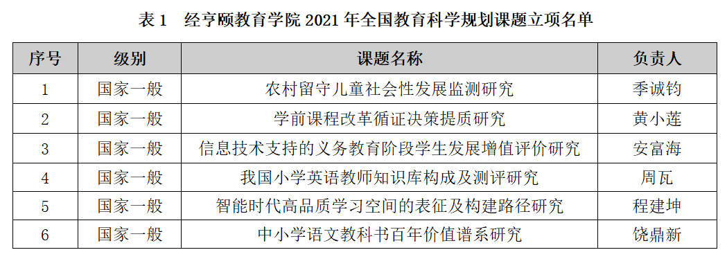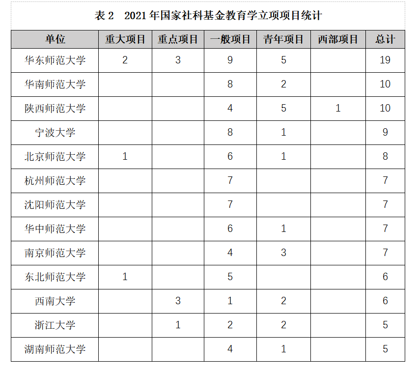 近日,全国教育科学规划领导小组办公室公布了全国教育科学“十四五”规划2021年度课题立项名单,女性自慰 季诚钧、黄小莲、安富海、周瓦、程建坤、饶鼎新6位老师获批国家一般项目(名单如表1),立项总数创女性自慰 历史新高。据悉,我校此次共获得7项国家一般项目立项,其中,女性自慰 获批项目总数6项,贡献率高达86%,立项数与沈阳师范大学、华中师范大学、南京师范大学并列位居全国高校第6位(如表2)。