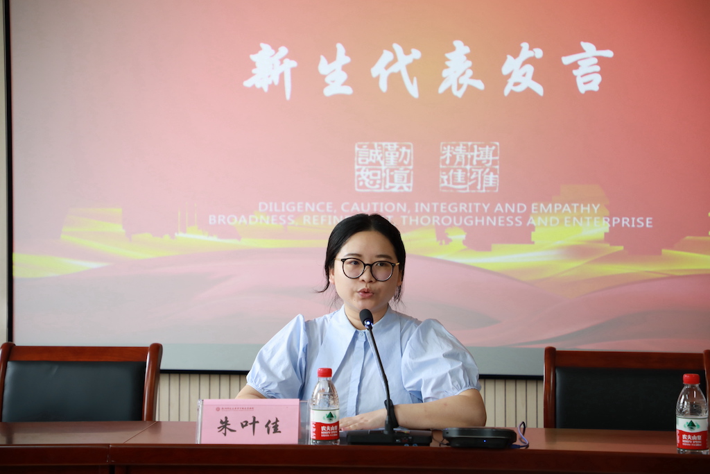 (在校生代表陈丹琴同学发言) (校友代表熊甸双博士发言) (新生代表朱叶佳同学发言)