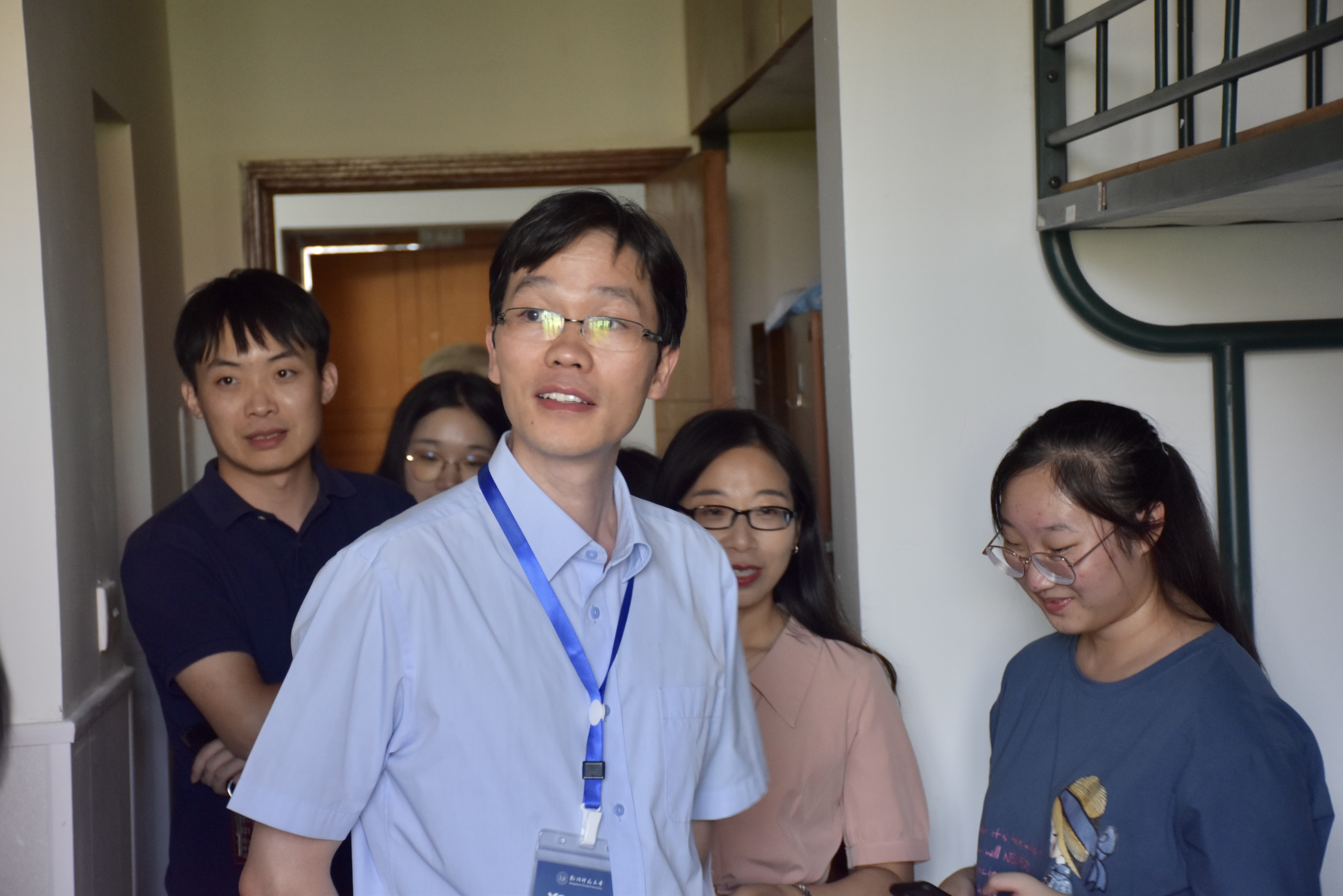 随后,严院长、蒋书记与各班班主任移步至学生公寓四号楼逐层慰问入住新生们,其中有不少来自湖南、江苏乃至新疆的新生。领导和老师们密切关注新生们在生活方面的需求,并给予新生最真挚的问候。新生们的到来无疑让空荡的寝室楼焕发勃勃生机,大学崭新的生活也从一寝六人的故事开始。