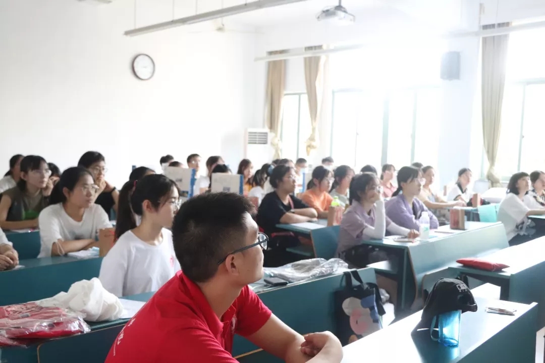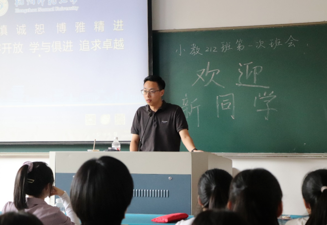 在老师和同学都进行了简单的休息后,下午3点,在班主任和新生学长们的带领下,各班开展班会。各班班会各具特色,其中小教214的班主任张墨涵老师为每位同学精心准备名字贴,方便同学之间相互认识;学前212的班主任张三花老师精心准备了班会课件,从学习、活动等各方面为同学们介绍大学生活。