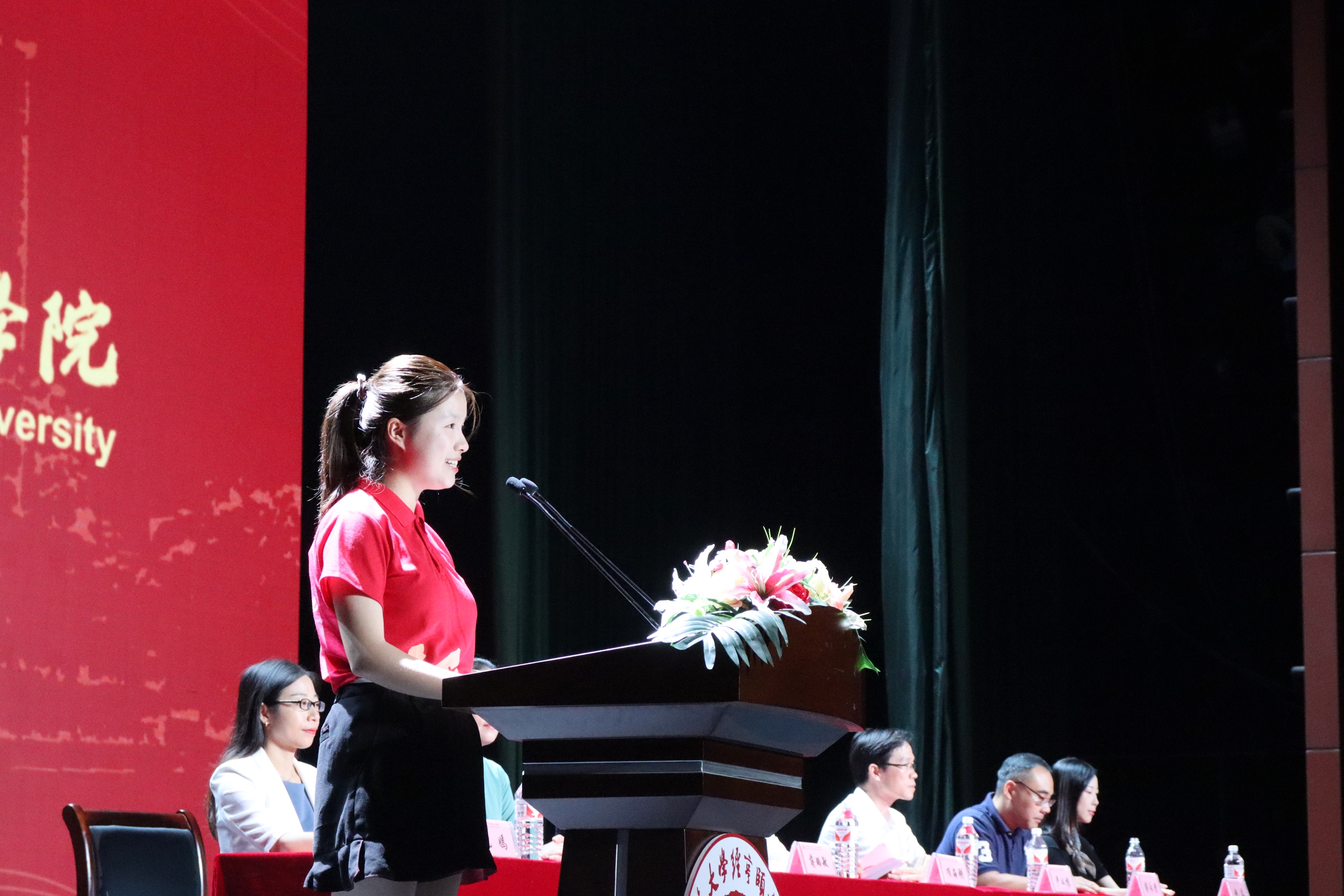 心理211班的洪冉冉同学代表所有新生进行了发言,首先她表达了对所有默默付出的父母老师诚挚的谢意,之后她阐述了女性自慰 精神和教学思想并立志永远保持对教育的热忱之心,终身学习,开拓视野,不负百年教院的传世荣光。