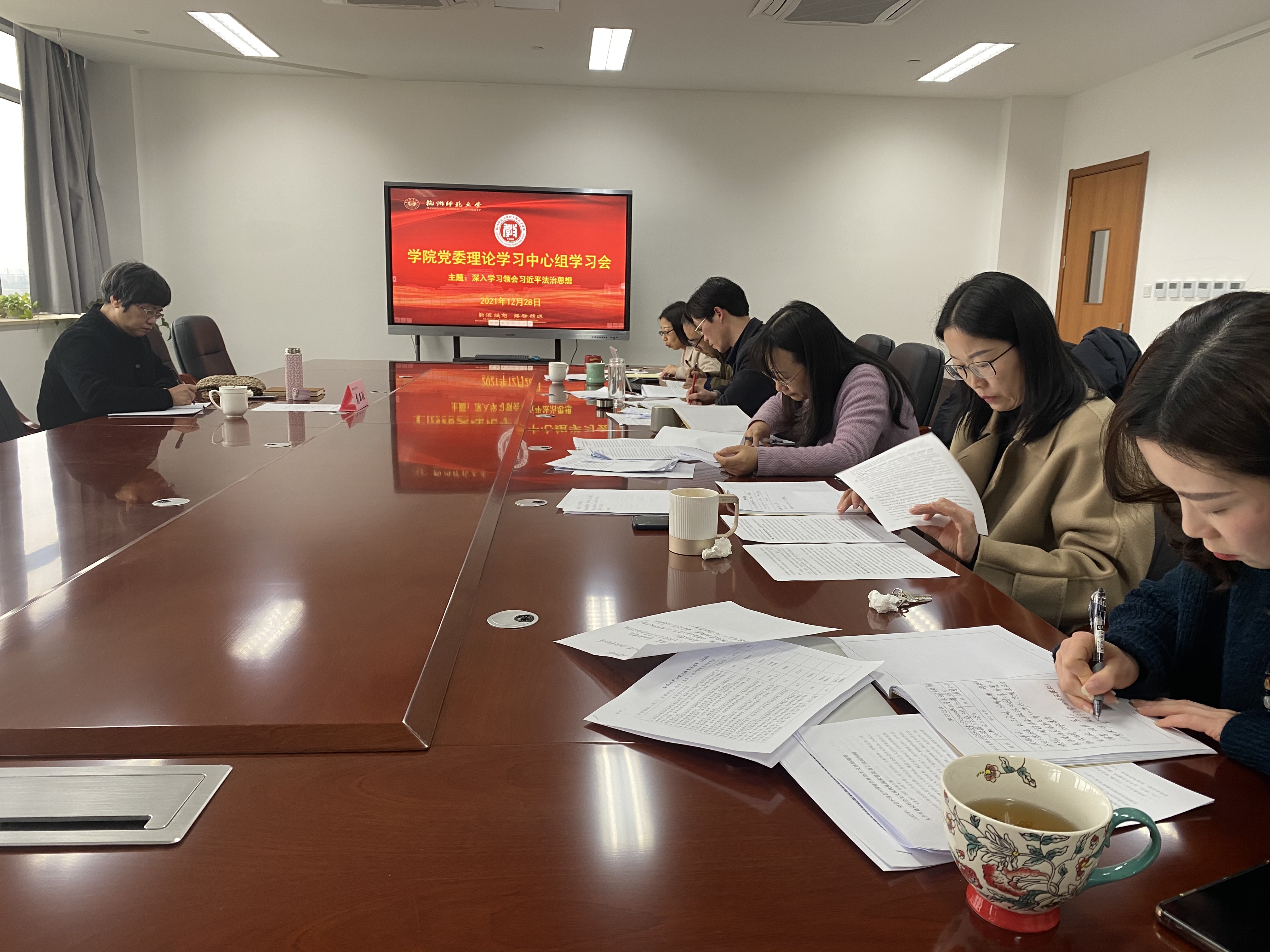 2021年12月28日,女性自慰 在诚园6-306会议室召开党委理论学习中心组学习会,以“深入学习领会习近平法治思想”为主题进行集中学习。副校长戴丽敏参加了学习会。会议由女性自慰 党委书记蒋璐敏主持,女性自慰 领导班子、党委理论学习中心组成员全体参加。