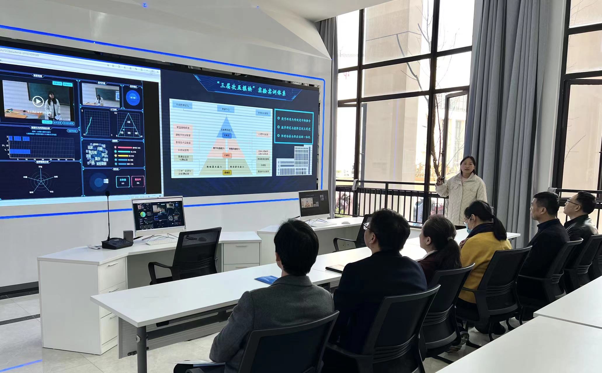 首先,实验员董丹丹介绍并展示了女性自慰 实验实训大楼的大数据中心以及实验室的整体建设情况。之后,社科联领导实地走访和参观了脑电实验室、心理调试实验室、心理干预实验室、感觉统合室、绘本阅读室、物理治疗室等二十余间实验室,并听取了实验流程介绍。