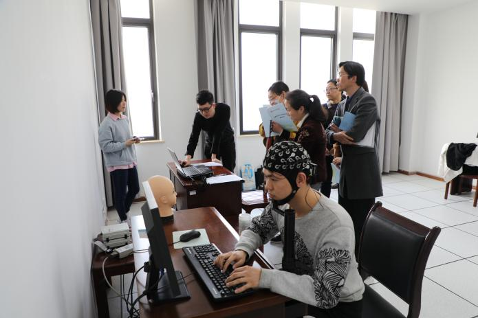 调研组还重点了解了实验室的设备购置、运行机制、操作规范、使用情况及所取得的成效等。他们饶有兴趣得观看了脑电、虚拟现实心理干预、儿童言语训练等多个实验室的现场实验演示,并与实验主试进行亲切交流。