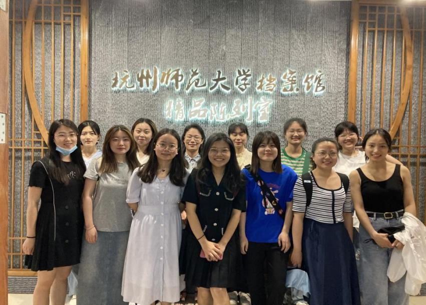 114年的风雨变迁。走进陈列室,同学们都惊叹于室内所展出的丰富史料,如《浙一师校友会志》、不同时期的毕业证书及学籍卡,等等。紧接着,我馆的讲解员邹老师向同学们讲述了杭师大的发展历程及教育故事。在整个过程中,同学们都认真听讲,不时追问。