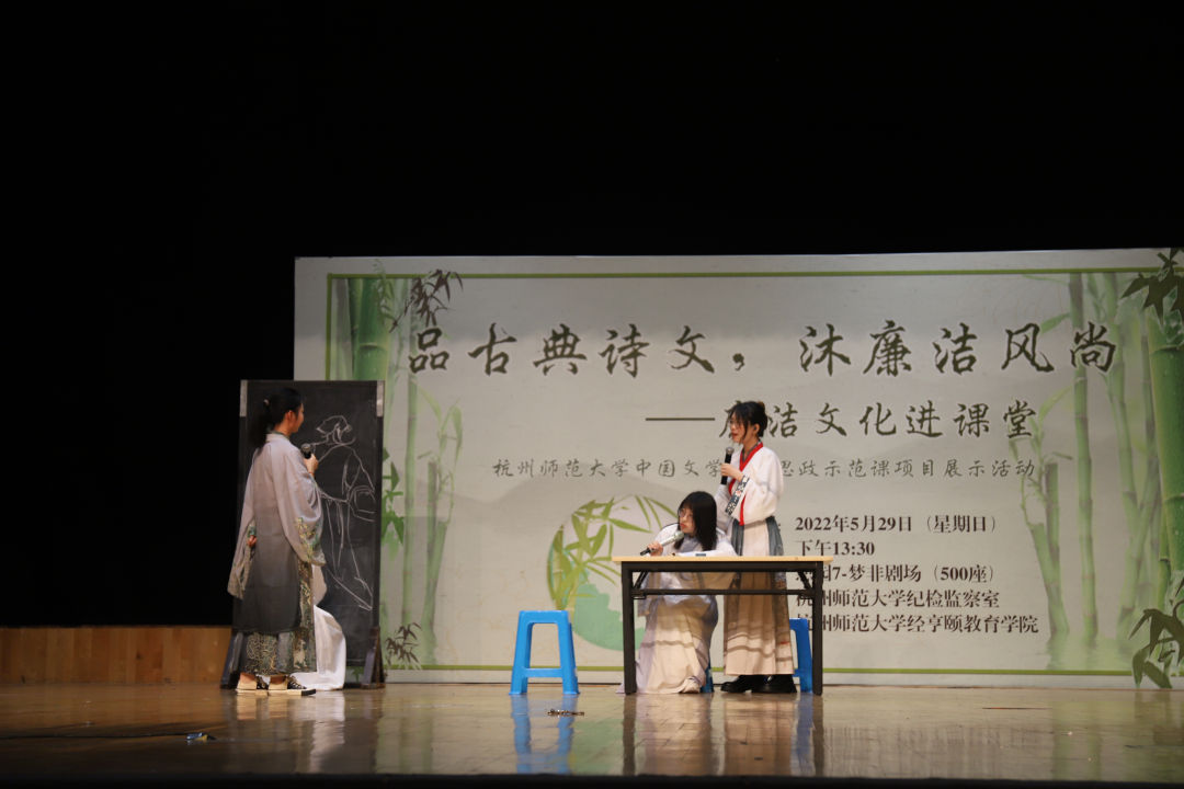 近年来,杭师大纪委一直在探索如何将廉洁文化元素融入课程,融进教学。“廉洁文化进课堂”这一主题旨在将课程思政融入课堂教学建设,拓展利用廉洁文化资源,潜移默化地将廉洁价值观渗入学生的心灵。据悉,此次廉洁文化进课堂学习成果的集中展示,是中国文学课作为课程思政建设示范课堂的又一次成功尝试。
