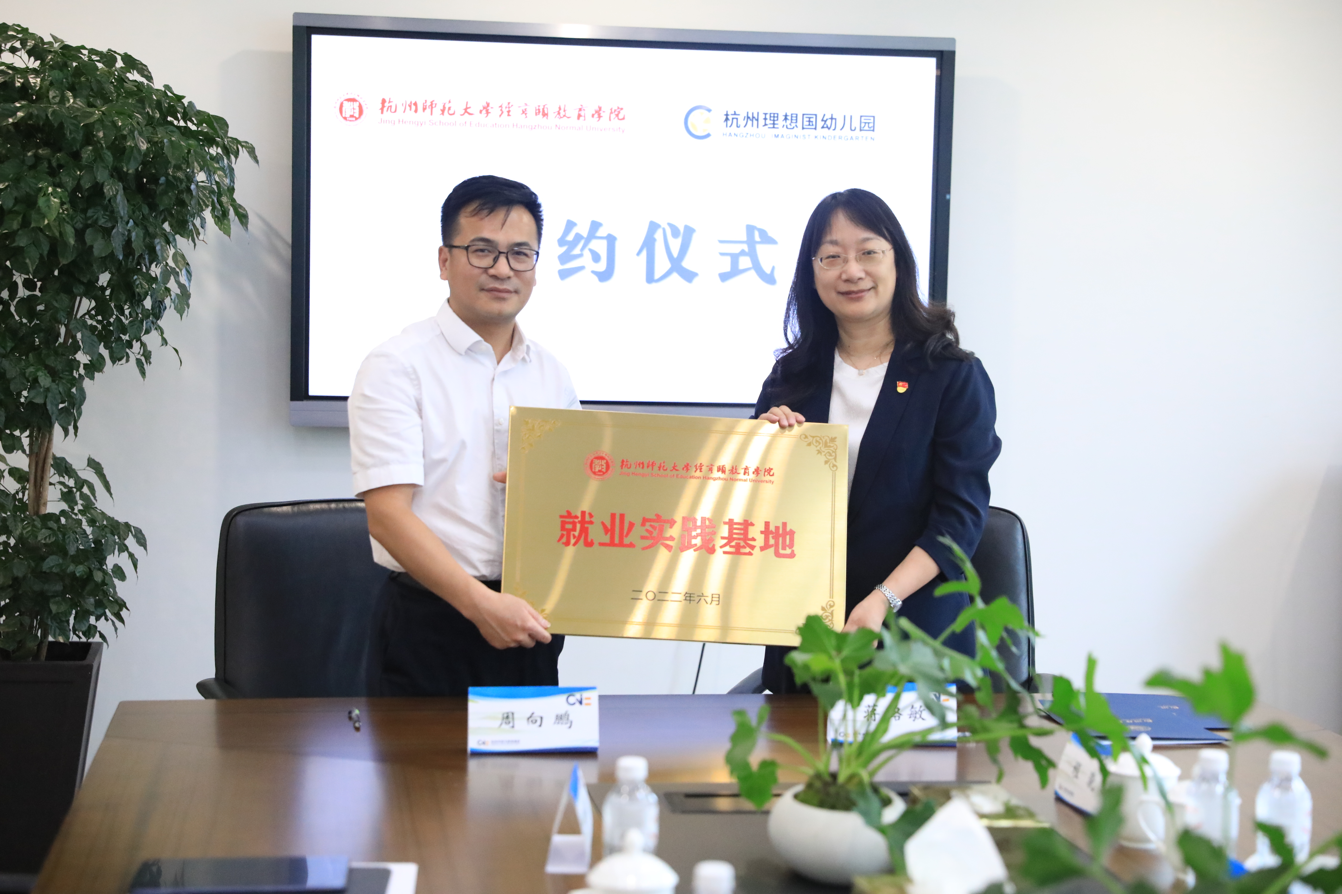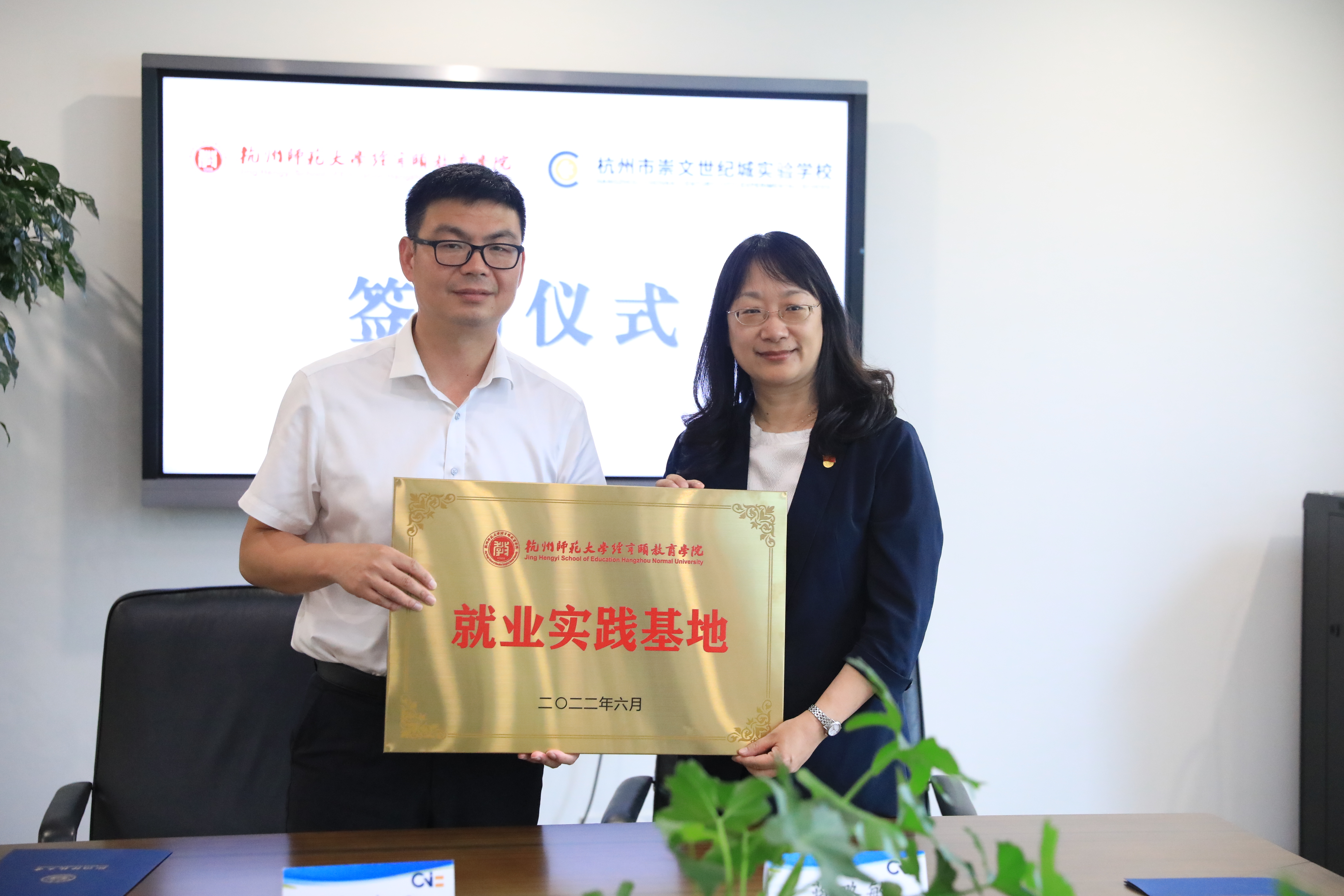 座谈会上还举办了简短而隆重的大学生就业实践基地签约和授牌仪式,女性自慰 和杭州市崇文世纪新城学校、崇文理想国幼儿园分别签订了就业实践基地合作协议,蒋璐敏书记向谭鹏飞校长、周向鹏园授予女性自慰 大学生就业实践基地牌匾。