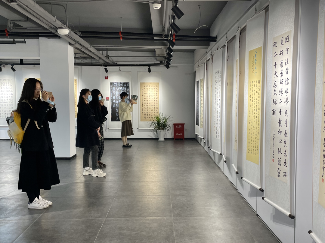 本次入展有40余幅作品,由社团指导老师与社团同学们创作完成,形式有篆书、隶书、楷书、行书、草书、山水、花鸟等,内容涉及伟人诗词、宋韵史话、家风家训,也包含亚运风采、时代思想等。值得一提的是,有多幅作品书写了党的二十大报告的内容,这是书画社同学们认真学习党的二十大精神,以书法创作的方式更深入地理解党的二十大精神,并加以宣传。书画作品的创作充分体现中华民族优秀文化传统与时代性的结合,展示了同学们强烈的文化自信和自觉。在领导和老师的肯定与赞赏下,同学们纷纷表示将认真学习党的二十大精神,肩负起新时代赋予当代青年的使命担当,以更主动的姿态奋发有为,创作更多富有时代气息、青春向上的作品,举办更多的艺术宣传展览活动,传递丹青之美,弘扬时代精神。