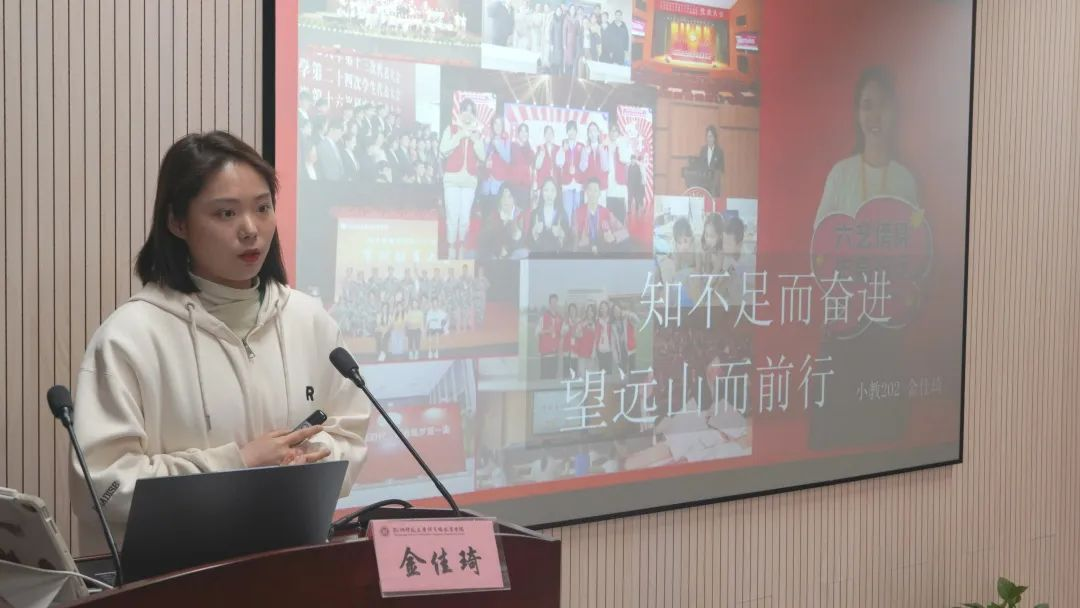 金佳琦从思想政治、学业评价、学生工作、志愿实践四方面出发,以自己的经历为案例展开详细介绍,分享了进行优秀团干部、团员、团支部答辩的宝贵经验。在思想政治方面,她强调要紧抓“思想”“强觉悟”的关键词,积极向党、团靠拢,踊跃参加卡尔·马克思杯理论竞赛、红船杯、思政论文竞赛等大赛。在学业情况方面,则要关注学习、重视基础,扬长避短,充分发挥自己的优势。金佳琦指出,为使答辩逻辑更清晰,同学们在罗列奖项时更要关注奖项含金量高低的排序、相关证书的照片佐证等细节。同时,她鼓励同学们勇于担当,热情投身于学生工作。金佳琦认为,在进行学生工作答辩时应当有所侧重,重点阐述自身在学生干部岗位上获得的实干成就与思想进步,在具体的数据支持下呈现醒目效果。最后,金佳琦建议同学们紧抓“实践”与“乐志愿”的核心思想,呈现多样化的志愿服务经历,选择有代表性、有特殊意义的志愿活动进行深入阐述。在讲座的结尾,金佳琦还分享了丰富的答辩经验学习渠道,激励同学们不断吸取他人优秀经验,呈现出更完美的答辩效果。