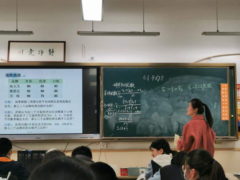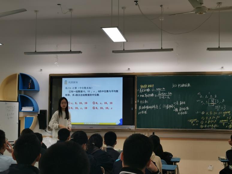 团队成员余丽丽同学开展了“中位数与众数”的新授课教学。在指导教师朱老师的指点下,整节课的设计以“实际问题导入,真实情境发问,抽象总结归纳,回归真实问题解决”为设计路线。在课后反思中,余丽丽同学认为对于教材理解还有待深化,日后将重点立足教材,加强教材分析,实现对教材的认识更加透彻。