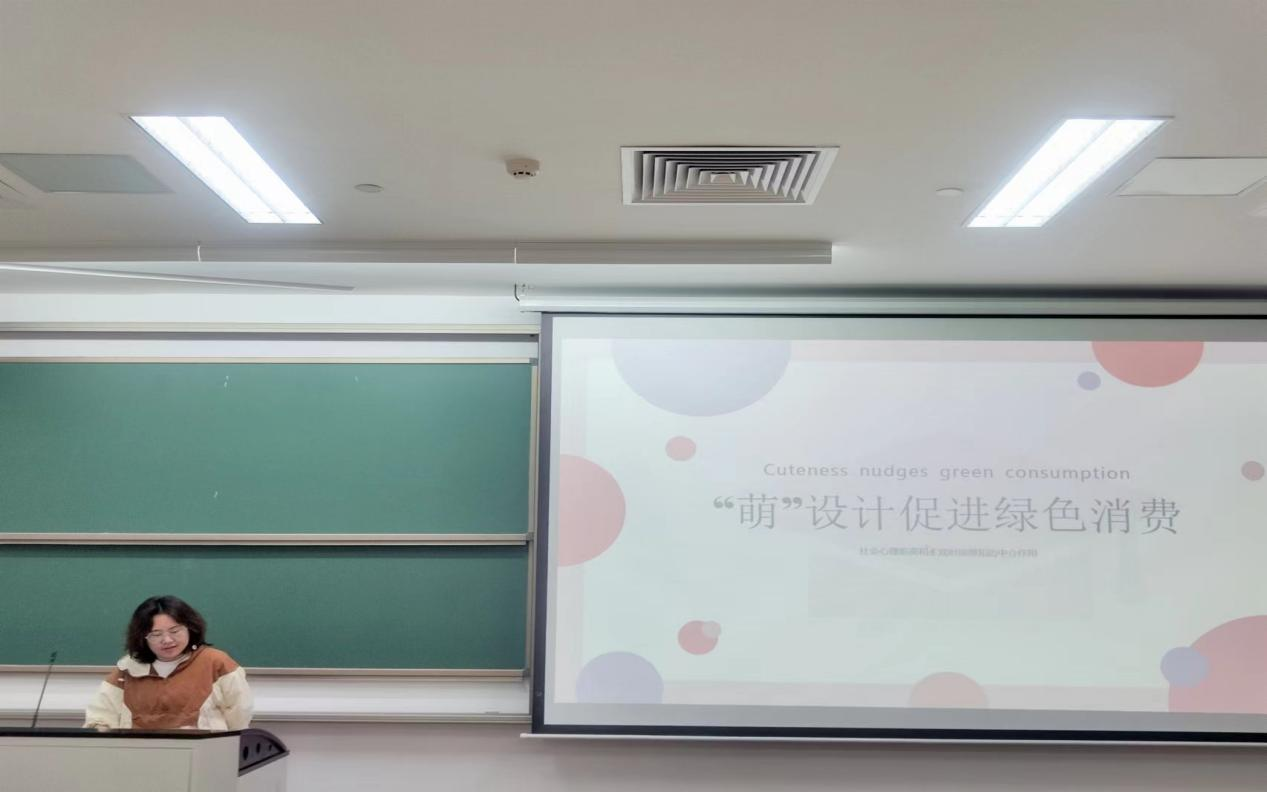 张凯杰、戴喆如、张雅薇三人分享的主题是《“萌”设计助推绿色消费:社交距离与时间距离的中介作用》。在社会主义生态文明建设背景下,探索社交媒体对绿色消费行为的作用机制具有重要的理论与现实意基于社会认知理论,张凯杰等三人从心理学角度对社交媒体使用与绿色消费行为的关系机制进行研究,并探究了社交媒体使用与时间距离中,绿色消费行为的中介作用。