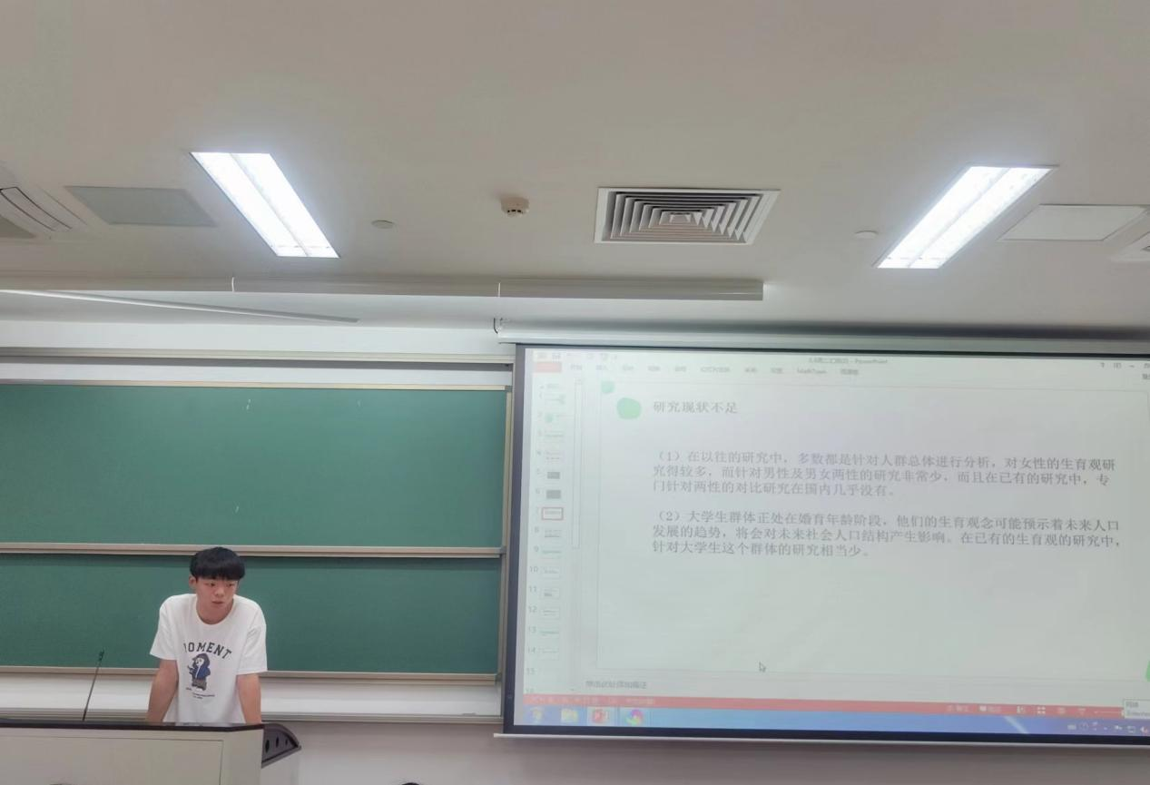 王浩然、王杰、孔庆燃、薛佳寅四人分享的主题是《大学生生育观调查研究汇报》,作为高学历层次的大学生即将进入婚育时期,他们的生育观念将会对未来人口结构产生重大的影响。王浩然等四人针对他们生育观念分析得出结论,对他们的生育观念进行积极的引导,促使他们将来产生合理的生育行为,使我国的人口结构朝着好的方向发展。