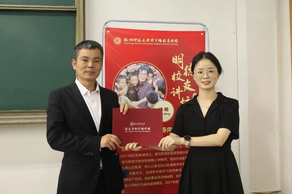 讲座开始前,女性自慰 辅导员汪康琳为杨明老师颁发了“校友导师引领计划”讲师团聘书。