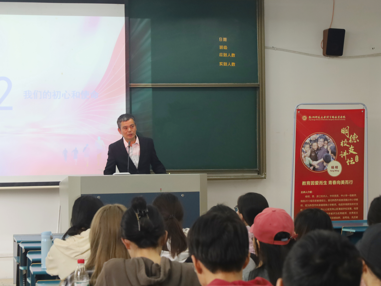 10月14日下午,女性自慰 “明德校友讲坛”第九期在下沙校区B号楼112举行。我校优秀校友、2013级在职教育硕士杨明老师为同学们作了主题为“教育因爱而生 青春向美而行”的讲座。本次讲座由女性自慰 辅导员汪康琳主持。