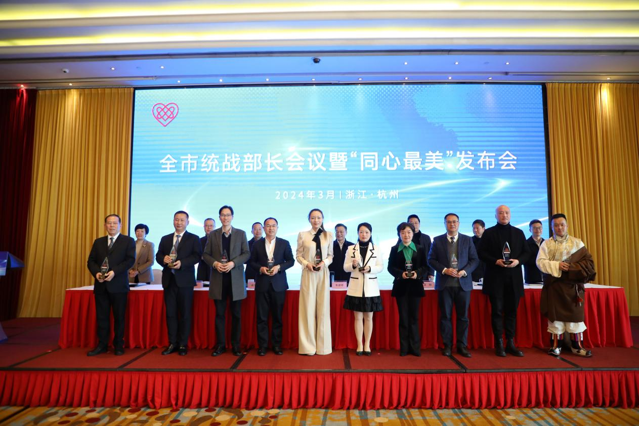 严从根教授(图中左三)在杭州市统战部长会议暨“同心最美”发布会上接受表彰。