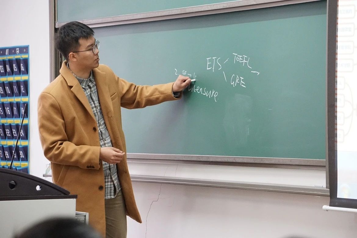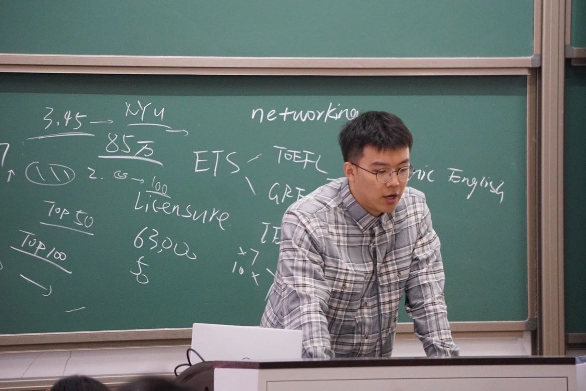 徐敬豪校友首先向同学们阐述了他的留学规划以及留学经历。由于儿时留学营和出国交流计划的经历,出国留学的想法在他心中早早萌发。大一时,怀揣着成为一名优秀教师的梦想,基于对自己的较高学习要求,他坚定了出国深造的愿望。步入大二大三,徐敬豪进一步接触了教育学课程,认识到缺乏实践经验是自己的一大缺陷。于是他广泛聆听讲座,认真学习学长学姐的经验分享,并积极参与社团实习。