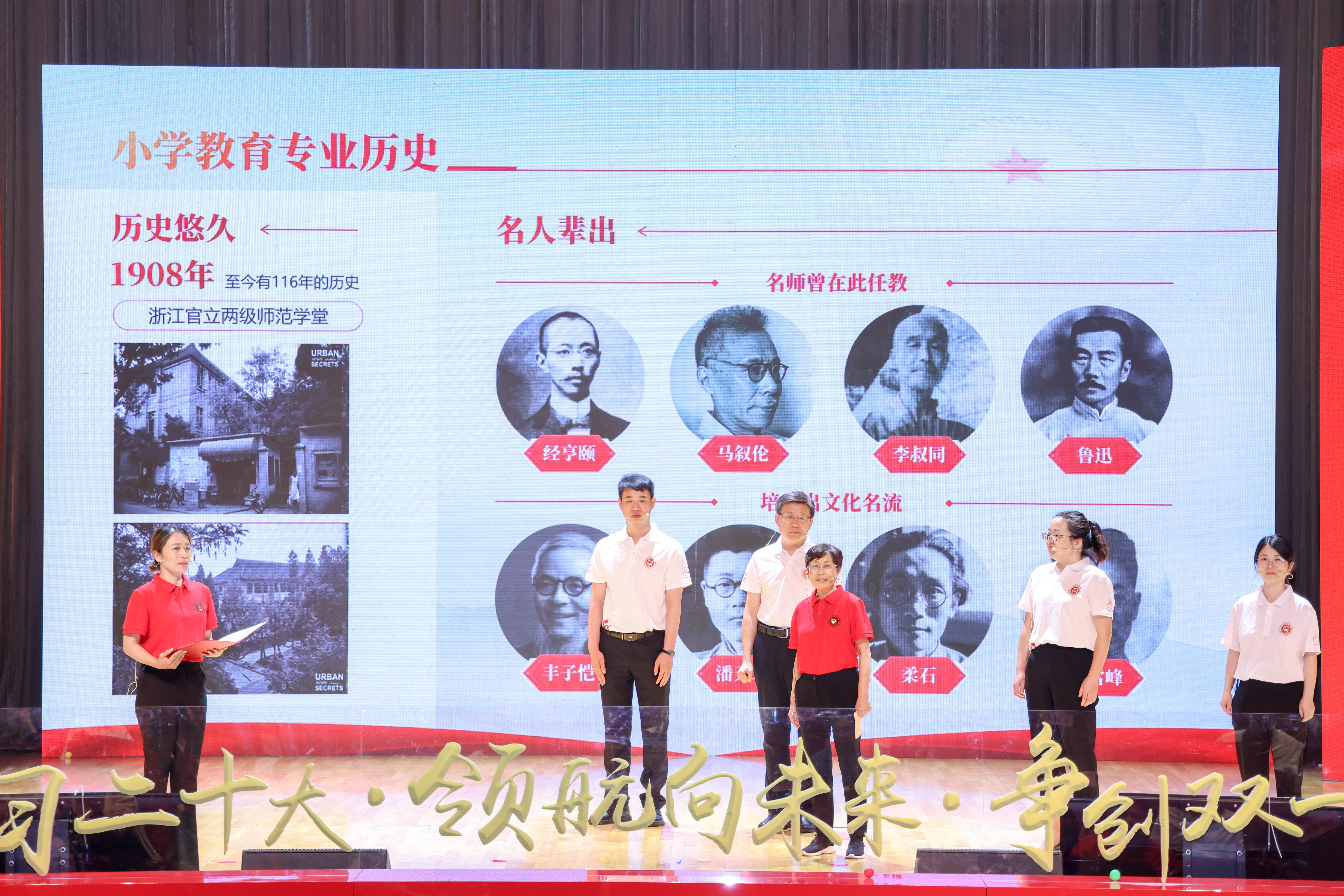 党支部注重协同育人。支部党员沉心教学,开展有“思想”的教育,不断培养教育家精神,涵育教育家情怀,推动师生多元发展。支部成员教学5A终身免考核3人,课程思政省级立项5项,获评课程思政示范基层教学组织。获评浙江省第一届高校教师教学创新大赛一等奖1人次,助推小学教育部获评省第一届高校教师教学创新大赛优秀基层教学组织。2023年,指导学生参加各类竞赛,国际级获奖22人次,国家级获奖14人次,省级获奖87人次。引导学生参与教师科研项目9人次,发表论文25篇,大学生创新创业项目立项5项,学生专利1项。以支部成员为主要成员开展的《以艺育德·以美润教:“新六艺”文化育人模式的十八年探索与实践》入选教育部高校思想政治工作精品项目。