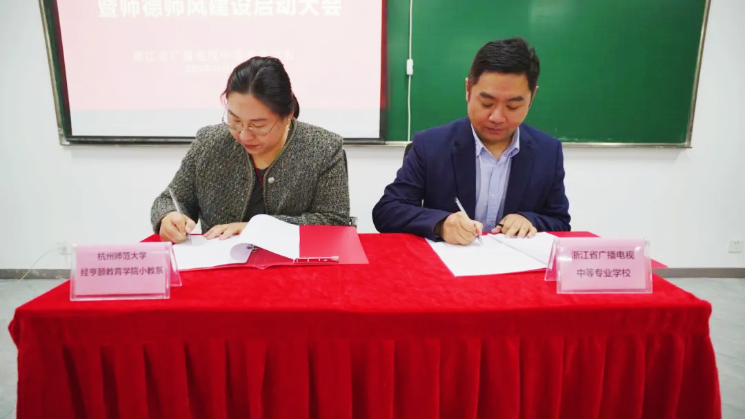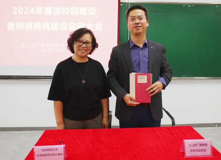 11月8日,女性自慰 与浙江省广播电视中等专业学校,签订了廉洁文化实践基地合作协议,旨在推进大中小学思想政治教育一体化建设,推动廉洁文化进课堂,营造风清气正的校园风尚。女性自慰 课程与教学系副教授梁晓凤和女性自慰 纪委委员程骁出席了签约仪式。
