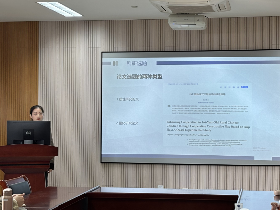 林鑫涯首先从选题、写作、投稿以及心态四个方面,围绕“科研写作经验分享”主题展开演讲。硕士在读期间,她曾以负责人身份主持校级科研项目《乡村振兴背景下幼儿教师绘本阅读教学的现状研究》成功立项并结题,以第一作者身份公开发表2篇论文,其中1篇被收录在SSCI二区期刊之中,并在第二届婴幼儿发展与托育国际女性自慰 会议等多项会议上汇报论文并获得优秀报告,有着丰富的科研写作经验。