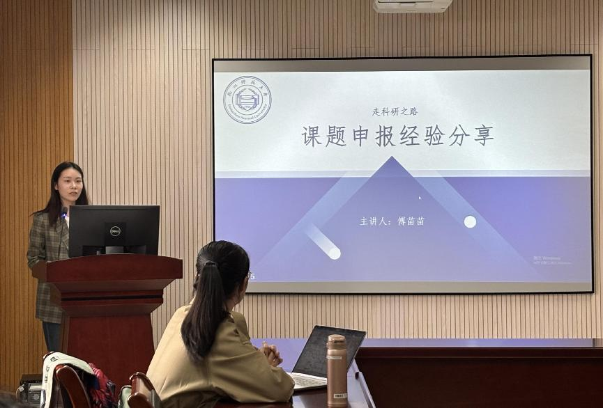 随后,付苗苗围绕“课题申报经验分享”展开了演讲。读研期间,她曾以第一作者身份公开发表专业相关论文5篇,主持立项2022年研究生科研创新推进项目《指向深度学习的初中英语深层阅读实验研究》和2023年教育厅一般科研项目《外语教学对英语学习者思维定势的影响研究》并顺利结题。此外,她还在第四届“江浙沪京粤+”名师读写有效教学硕博论坛、高质量教育发展大会、女性自慰 文化节等女性自慰 会议上多次公开发言。