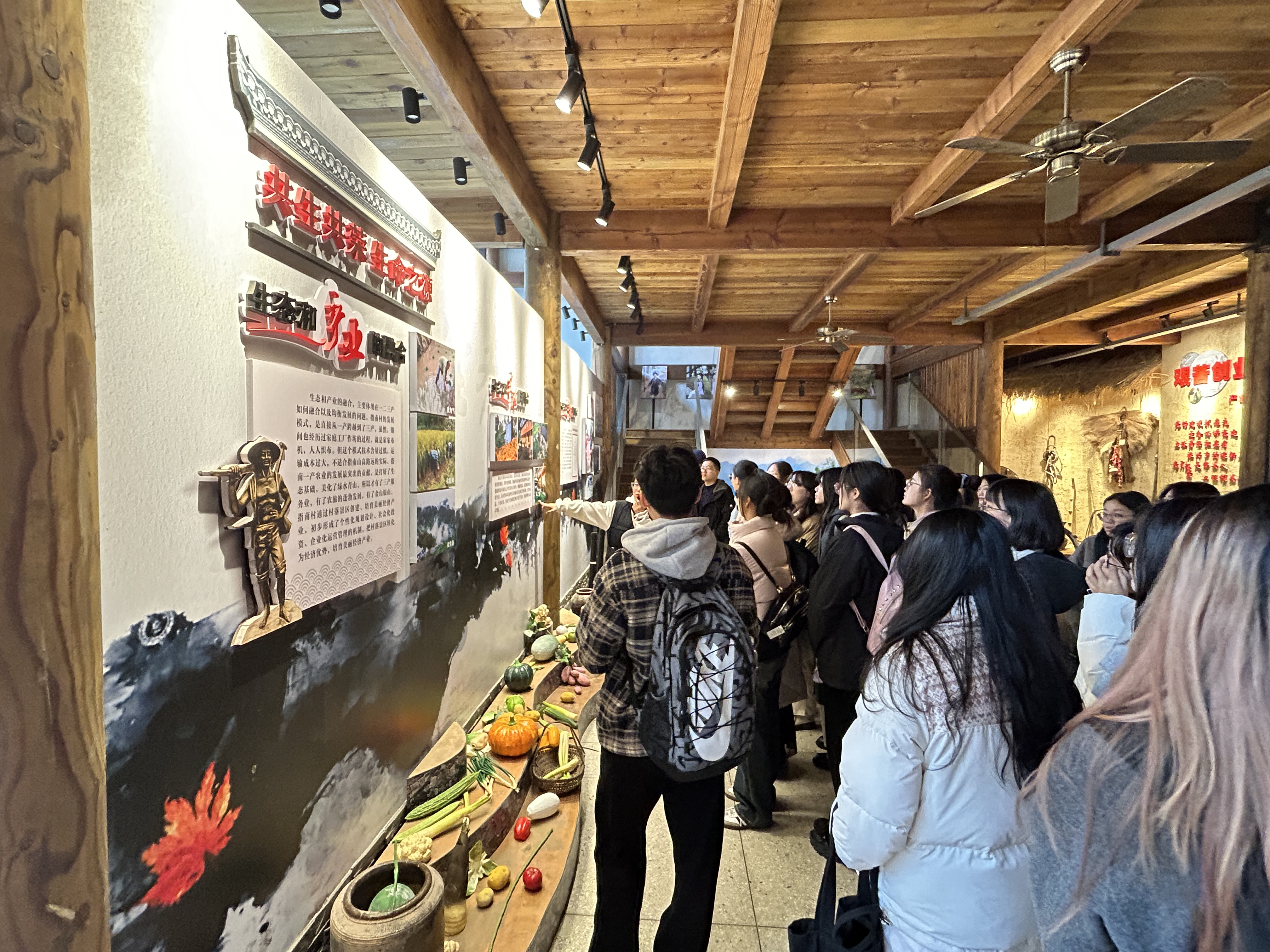 随后党员们来到了乡村振兴馆,这里的史料与实物陈列琳琅满目。馆内七大板块如时光长廊,串起指南村振兴全景,从顶层设计至基层实践,从产业兴农至文化铸魂,党员们逐一细览、凝思体悟。沿途聆听村委以党建凝聚合力,修古宅、优基建、创景区,激活文旅产业,村民增收致富故事,党员们见证了乡村振兴勃勃生机,对党建引领乡村发展战略有了更鲜活的认知与深层感悟,坚定以党建促发展、服务乡村的决心。