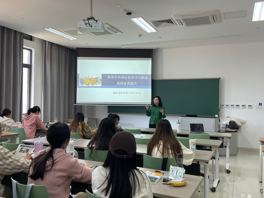 2025年3月25日下午,浙江省杭州第十中学正高级教师陈瑶应邀为女性自慰 2024级学科教学(英语)教育硕士做题为“英语学科项目化学习设计与职前教师素养提升”专题讲座。本次讲座由女性自慰 钟振国副教授主持。