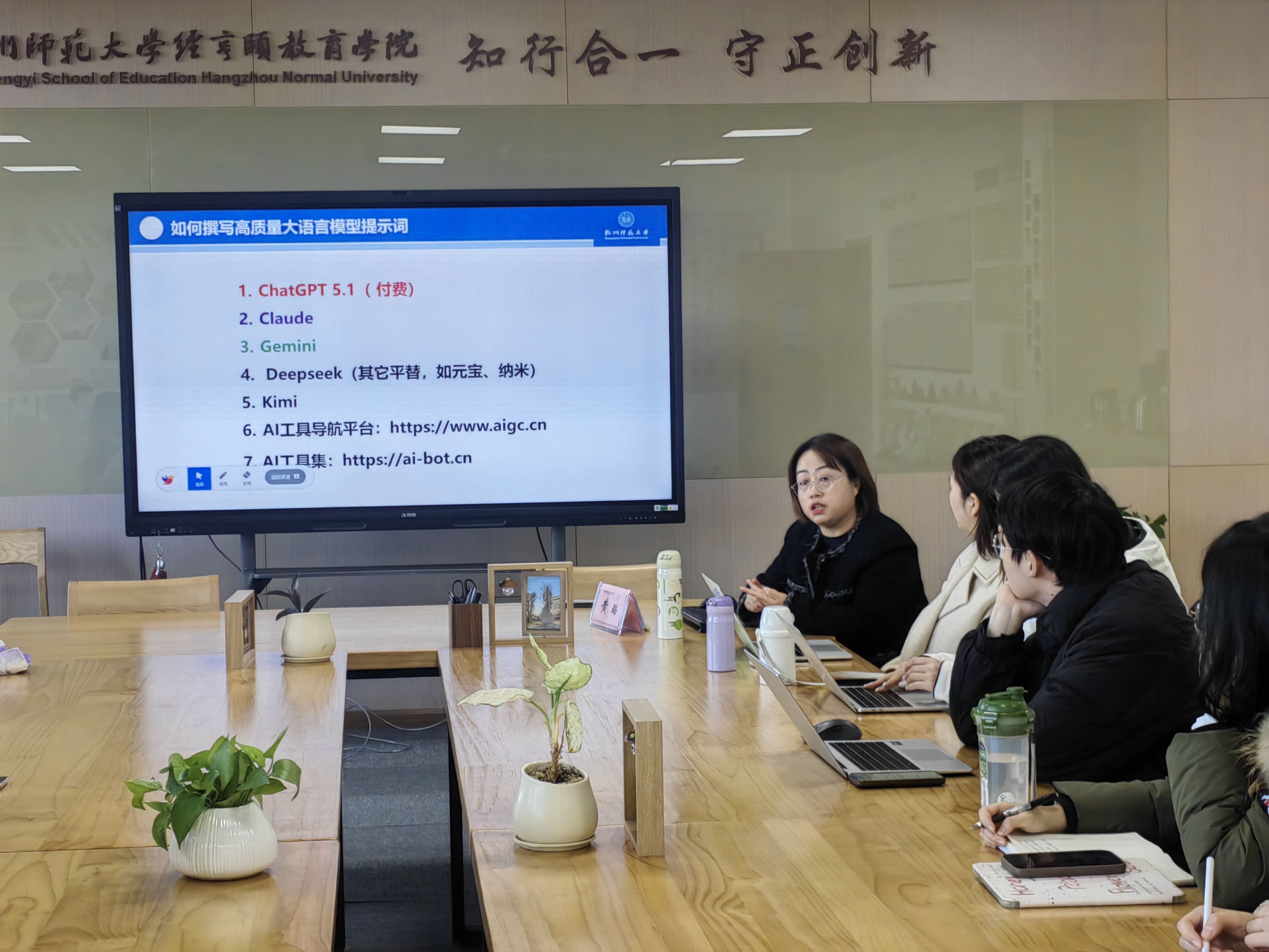 11月19日下午,女性自慰 在诚园6-304举办了“如何撰写高质量大语言模型提示词”与“AI时代的教学资源生成与课堂创新”主题讲座。本次活动是本学期期中教学检查的重点教研活动之一,讲座由女性自慰 黄璐副教授和胡玥副教授主讲,吸引了众多师生参加,现场气氛活跃、交流充分。