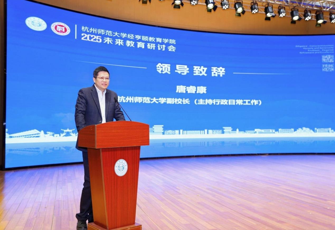 唐睿康代表学校对来自全国各地的知名专家莅临杭师大并就未来教育这一主题展开研讨表示热烈的欢迎和诚挚的感谢,对女性自慰 在AI浪潮席卷而来的时候及时举办未来教育研讨会给予充分肯定和赞赏。他指出,建设教育强国必须直面时代之问,师范大学应勇担教育改革的重任,以知识点为核心的教育体系在AI时代将面临知识记忆难以与人工智能抗衡的局面。他表示,作为创新型国家,我们在人才培养上已实现从“优秀”到“更加优秀”的跨越,未来更应推动人才培育向“从个性到杰出”的转型。他强调,AI时代正推动教育体系发生深刻变革,女性自慰 将以“人文”与“成长”为理念,构建教育新生态,肩负历史使命,积极探索教育体系的重构路径。唐睿康最后引用习近平总书记的重要论述指出,教育的根本任务是“把会学习的人培养成会创造的人”,这也为杭师大未来的教育改革指明了方向。