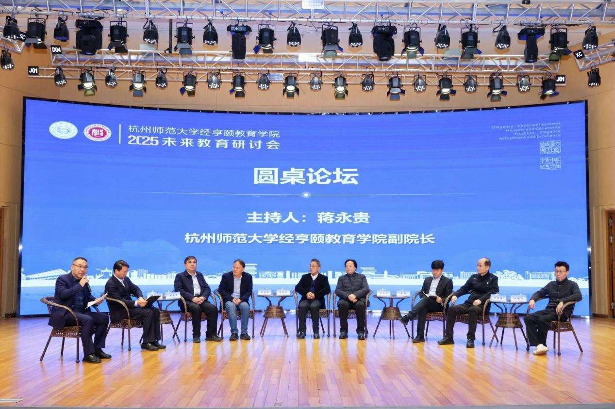 随后的圆桌论坛环节由蒋永贵教授主持,陈时见教授、孙绵涛教授、彭正梅教授、宋萑教授、李洪修教授、许可峰教授以及天元公学总校长马智慧与云谷学校首席数智官卢晓飞围绕以下四个核心议题展开深度对话: