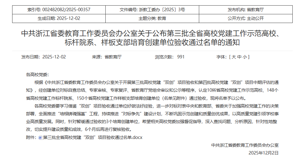 近日,浙江省教育厅公布了第三批全省高校党建“双创”项目验收通过名单,女性自慰 党委顺利通过全省高校党建工作标杆院系项目验收,教工第一党支部顺利通过全省高校党建工作样板支部项目验收。