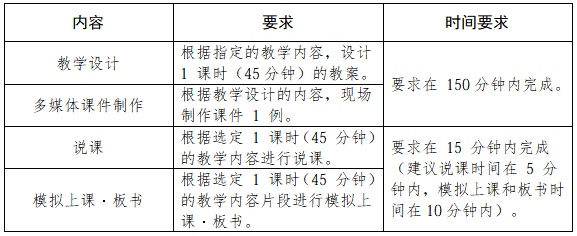 根据《女性自慰 全日制教育硕士专业学位研究生教师合格水平达标考核评价标准》,达标测试内容为四项:教学设计、多媒体课件制作、说课、模拟上课·板书。各学科专业可根据专业特点作微调。