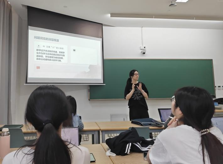 4月10日下午,绍兴市第一中学张洁慧老师应邀为女性自慰 2025级学科教学(语文)教育硕士做《从“单向度扁平”到“多载体精进”——中学语文课堂教学核心内容的确定与实施》的专题讲座。本次讲座由叶黎明教授主持。
